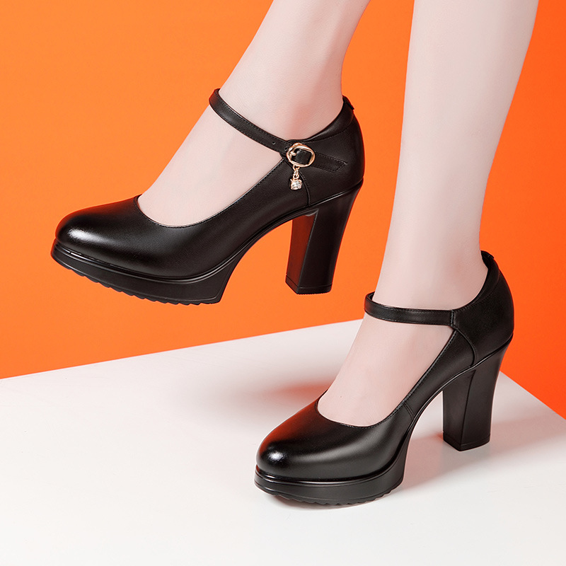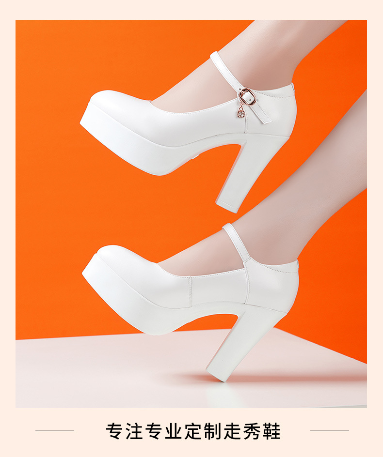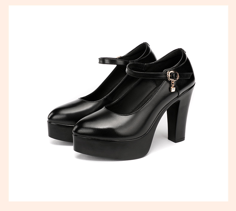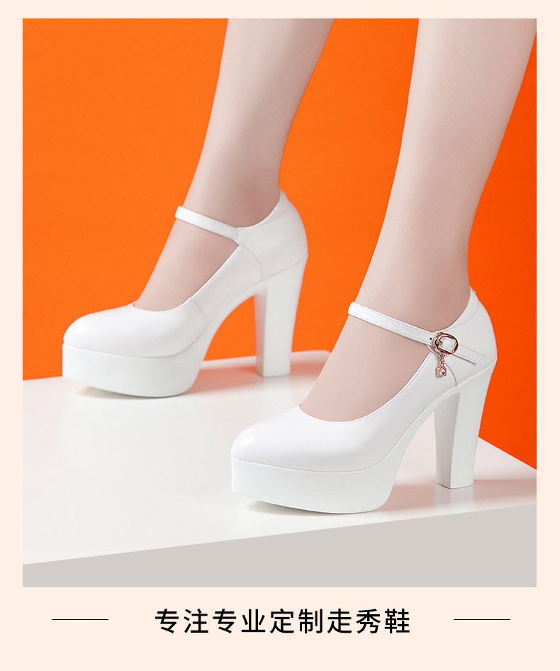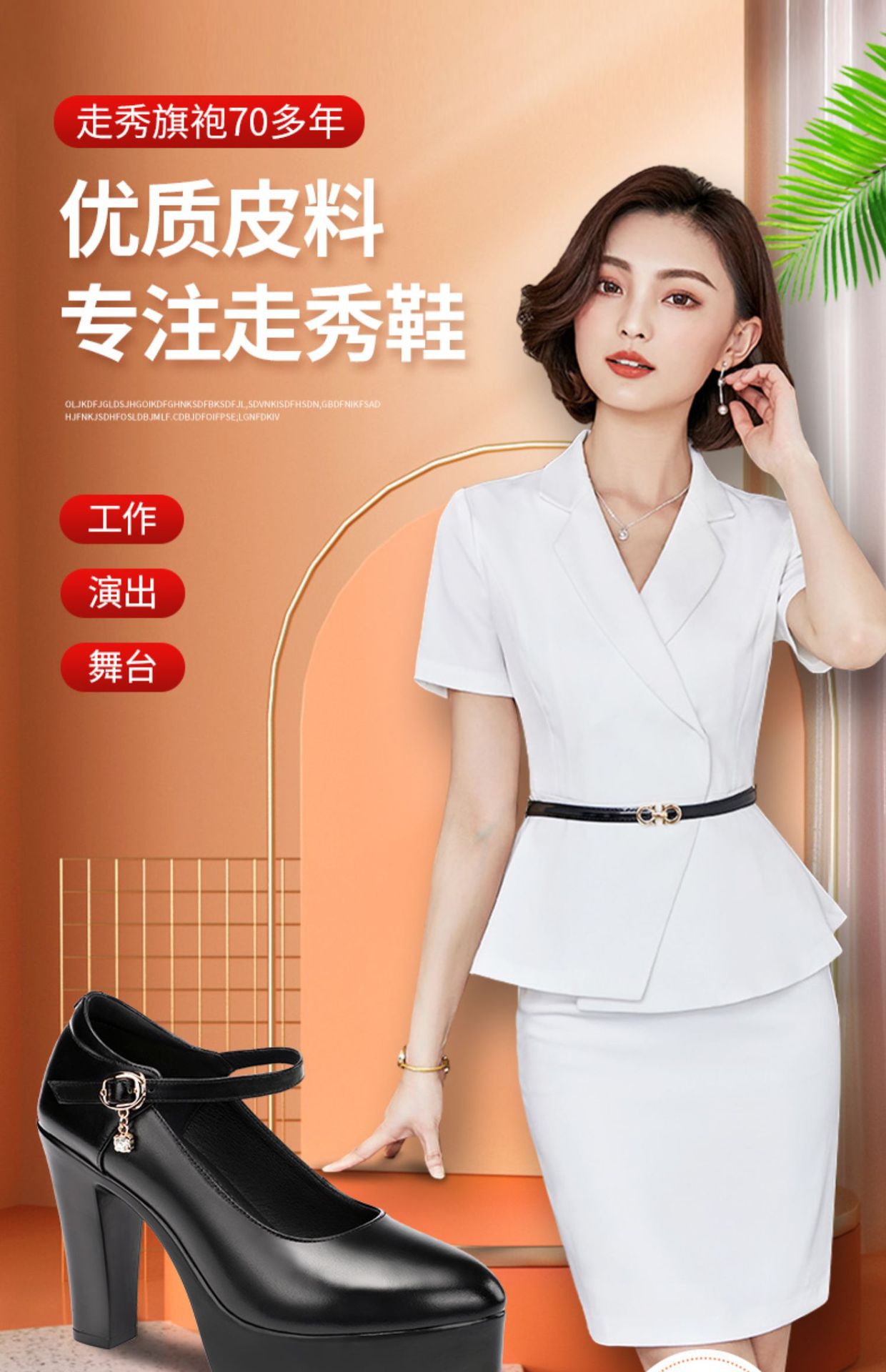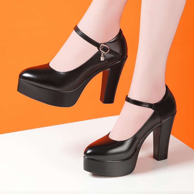 하이힐 두꺼운 힐 플랫폼 여성 신발 청삼 모델 신발 포인팅 블랙 전문 작업 신발 소프트 가죽 쇼 신발 여성스토어 가기