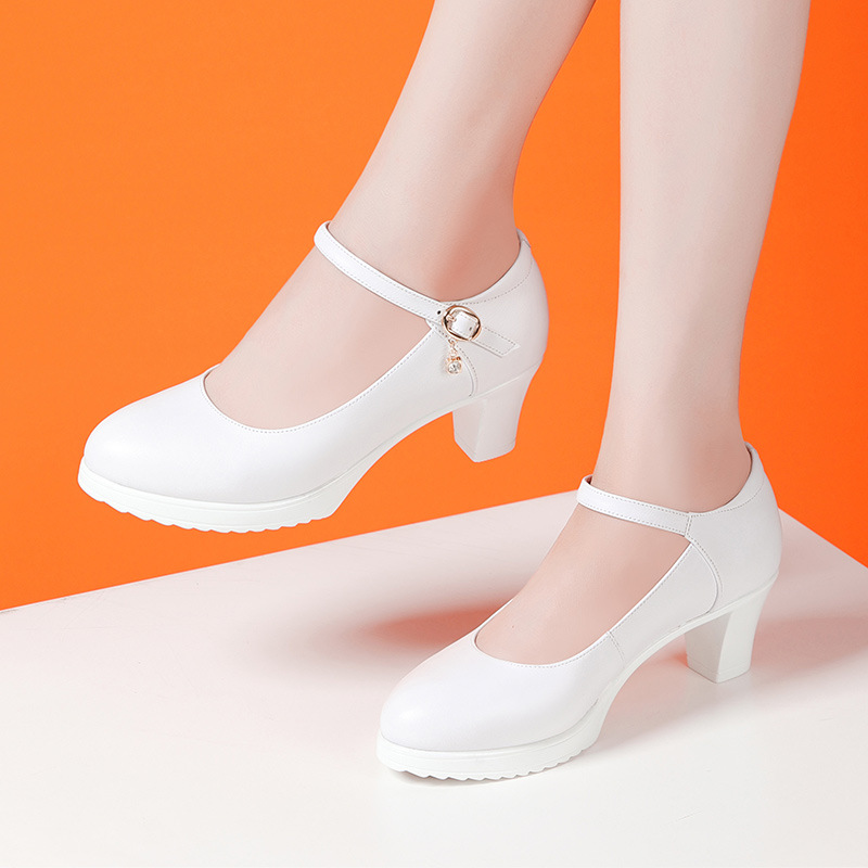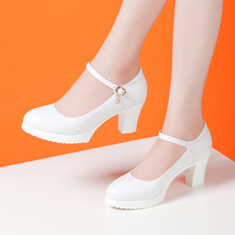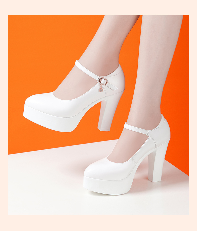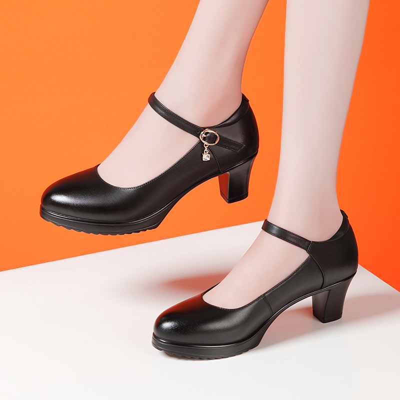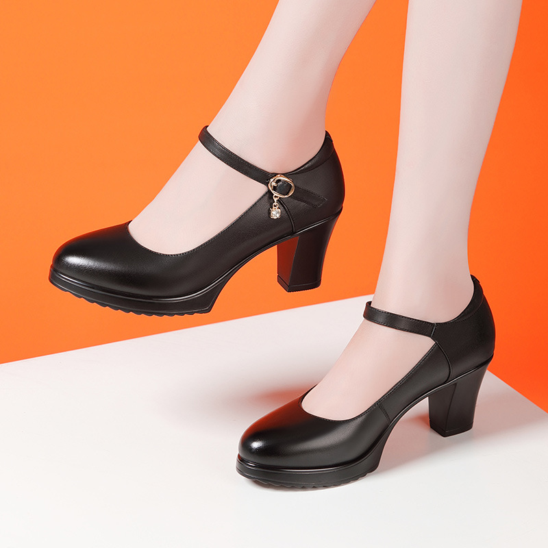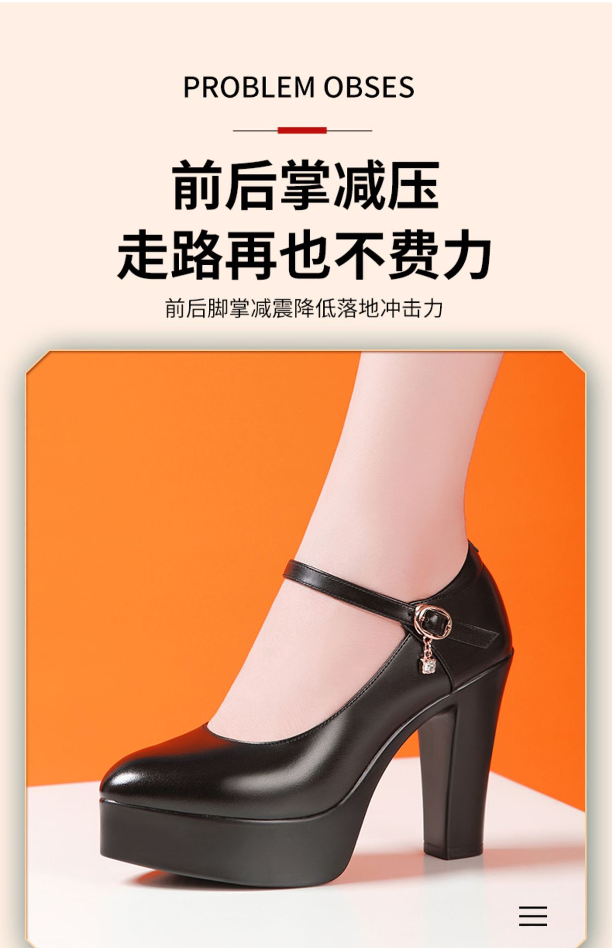 하이힐 두꺼운 힐 플랫폼 여성 신발 청삼 모델 신발 포인팅 블랙 전문 작업 신발 소프트 가죽 쇼 신발 여성스토어 가기