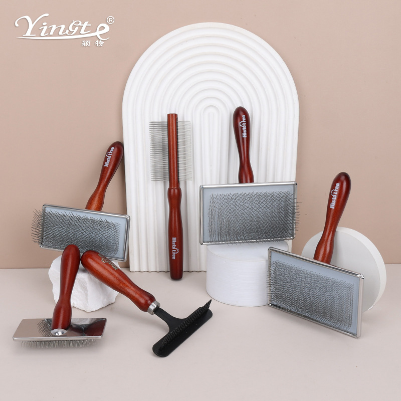 애완 동물 빗 개와 고양이 단단한 나무 빗 바늘 빗 푹신한 머리 빗 양면 빗 손톱 갈퀴 빗 빨간색 갈색 나무 손잡이 시스템스토어 가기
