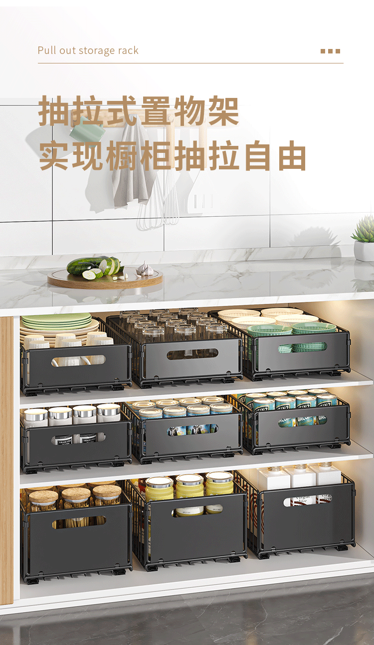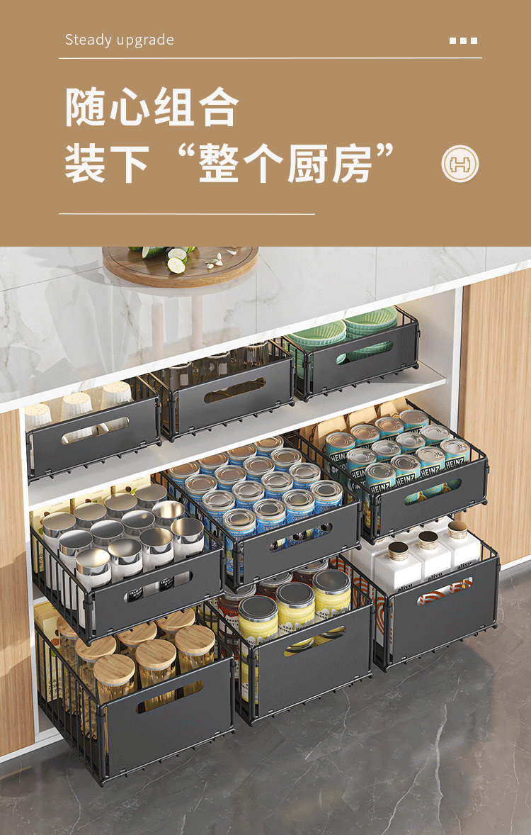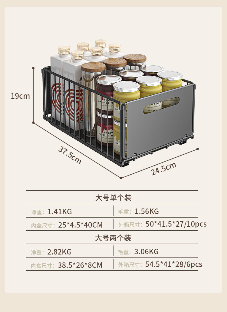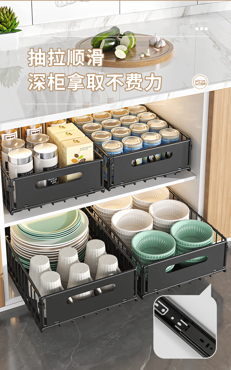 주방 스토리지 랙 캐비닛 풀 아웃 바구니 싱크 단층 스토리지 박스 슬라이드 서랍 레이어 조미료 랙