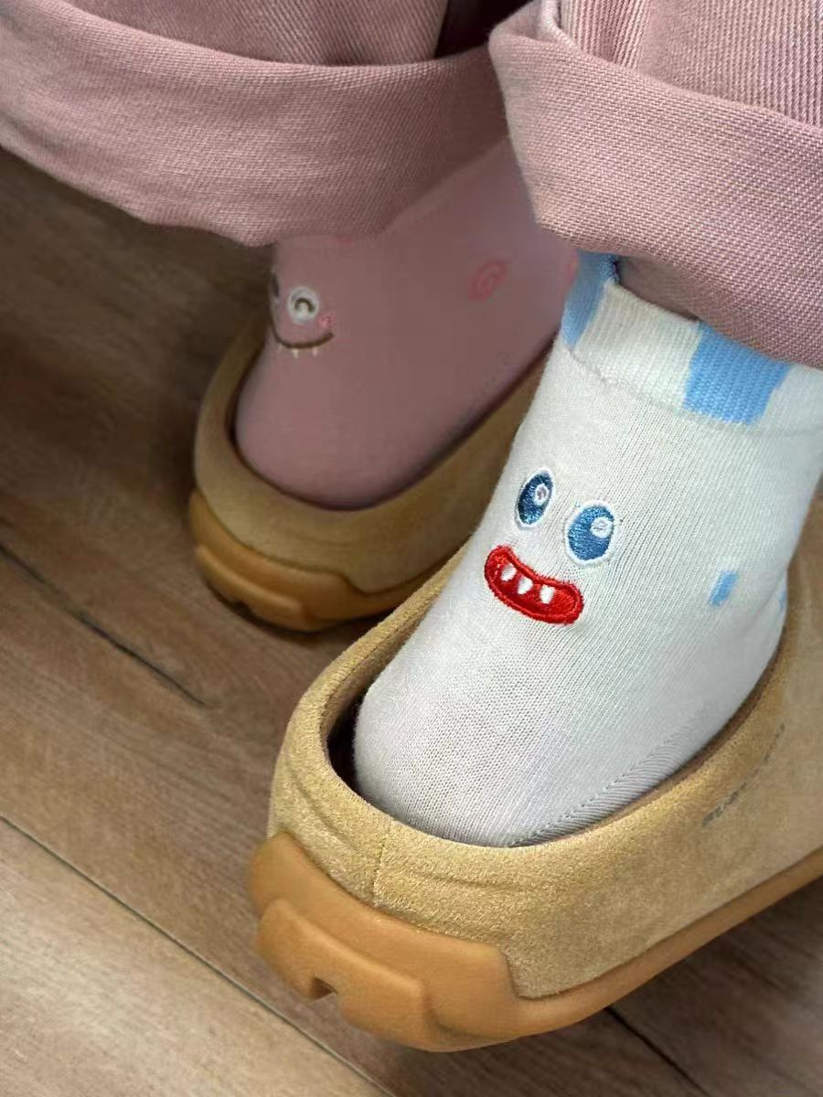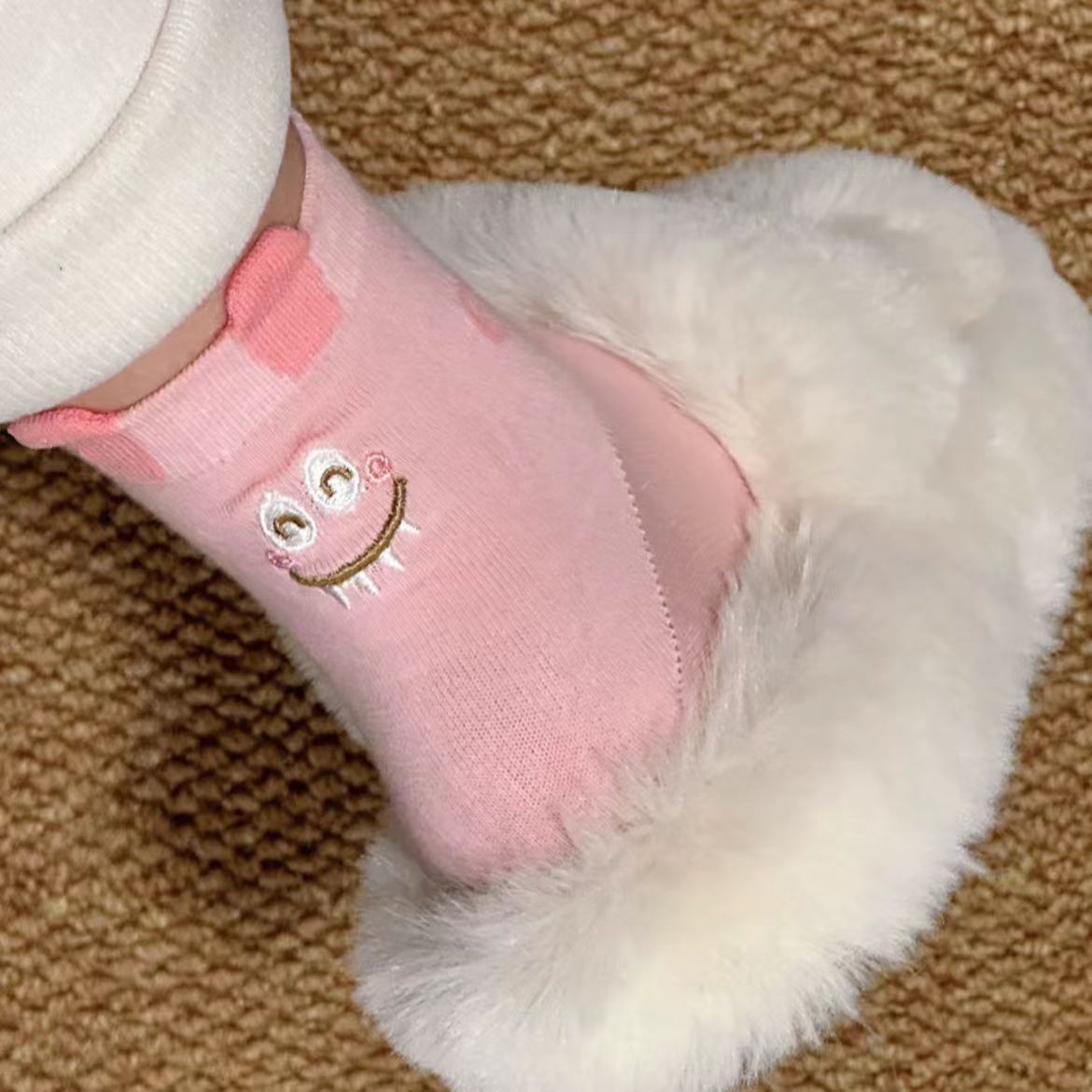 새로운 만화 치아 괴물 양말 입체 귀 귀여운 소녀 핑크 틈새 중간 종아리 길이 양말 여성 미끄럼 방지 학생 양말스토어 가기