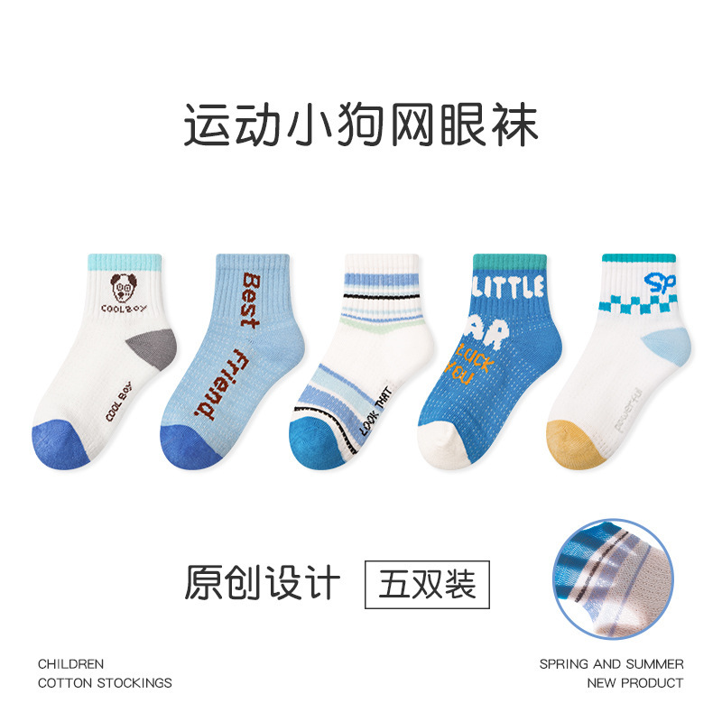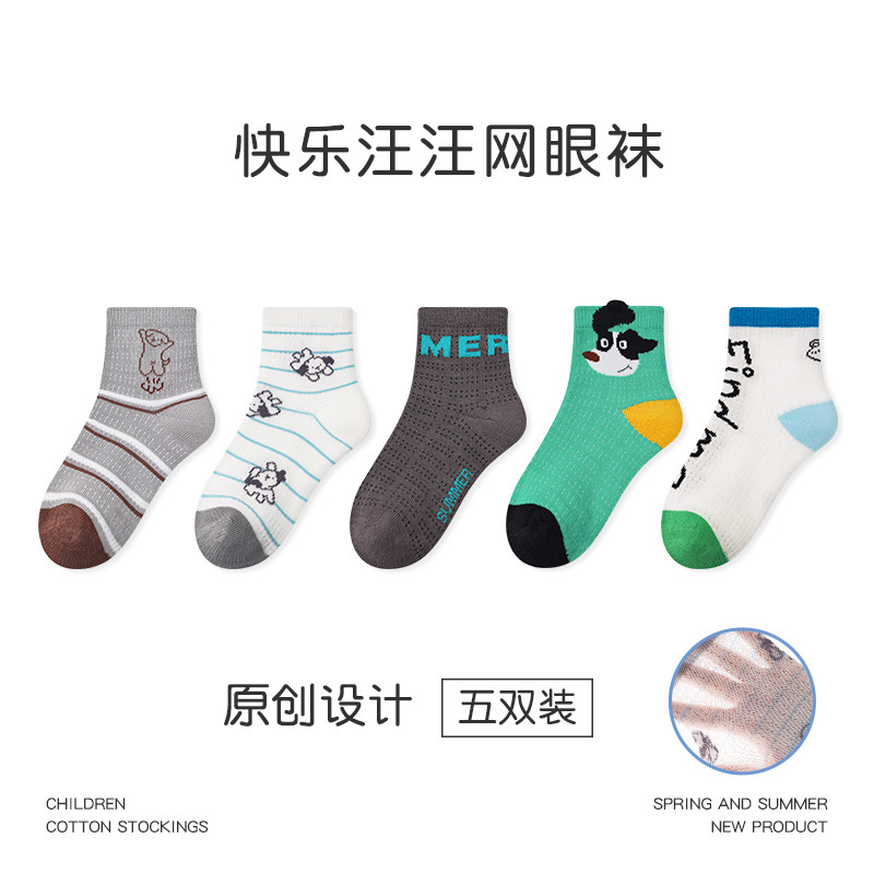 1704 어린이 양말 도매 24 봄과 여름 얇은 스포츠 강아지 메쉬 양말면 뼈없는 귀여운 소년 양말