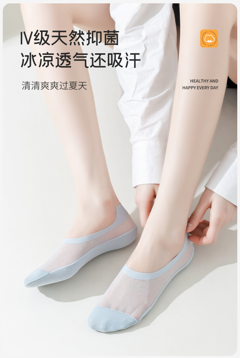 24 개의 새로운 안티 탑 깨진 메쉬 통기성 보이지 않는 양말 바닥 땀 흡수성 탈취제 실리콘 미끄럼 보트 여성용 초박형 메쉬 양말