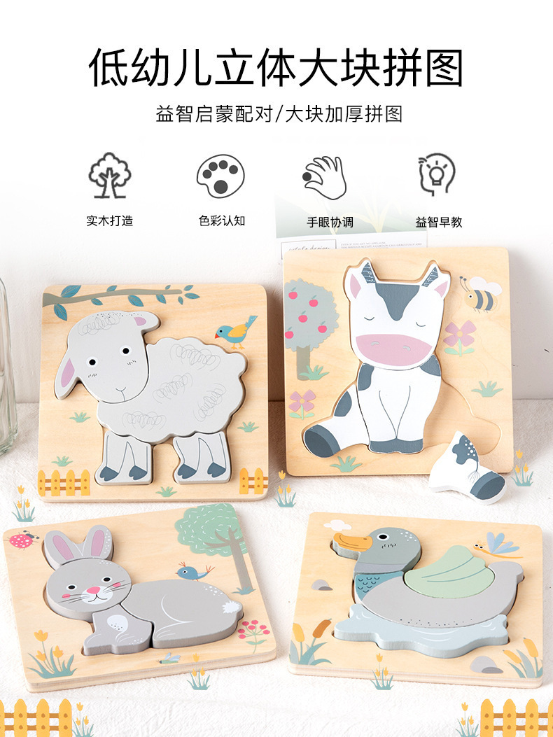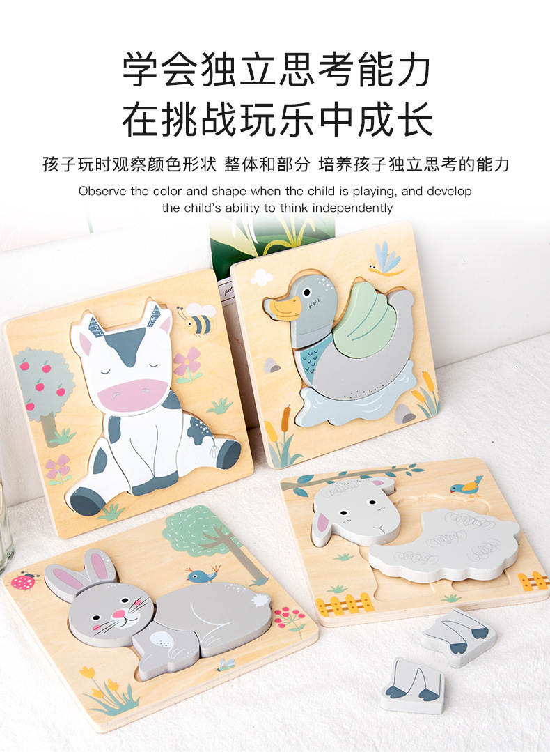 Weiwihu 만화 동물 입체 퍼즐 어린이 몬테소리 조기 교육 나무 퍼즐 Amazon 베스트셀러 교육 장난감스토어 가기