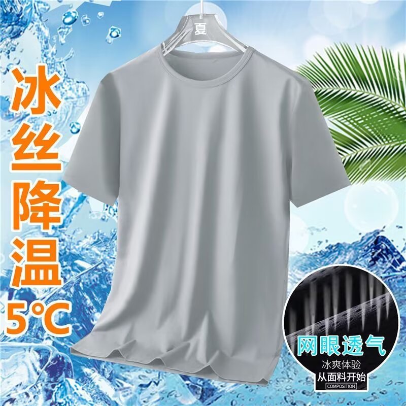 여름 반팔 티셔츠 남자 아이스 실크 메쉬 슬리밍 얇은 캐주얼 올 매치 라운드 넥 셔츠 빠른 건조 운동복 티셔츠 탑스토어 가기