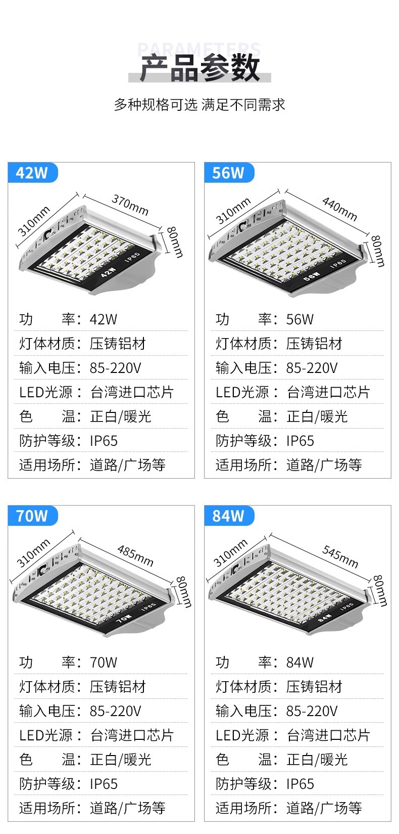 LED 가로등 야외 방수 평면 패널 모듈 가로등 헤드 42W 슈퍼 밝은 새로운 시골 도로 조명 높은 극 램프
