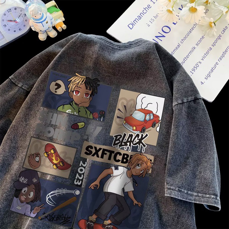 씻은 고민 면 티셔츠 짧은 소매 남성 여름 유행 패션 브랜드 미국 하이 스트리트 복고풍 느슨한 반 소매 티셔츠