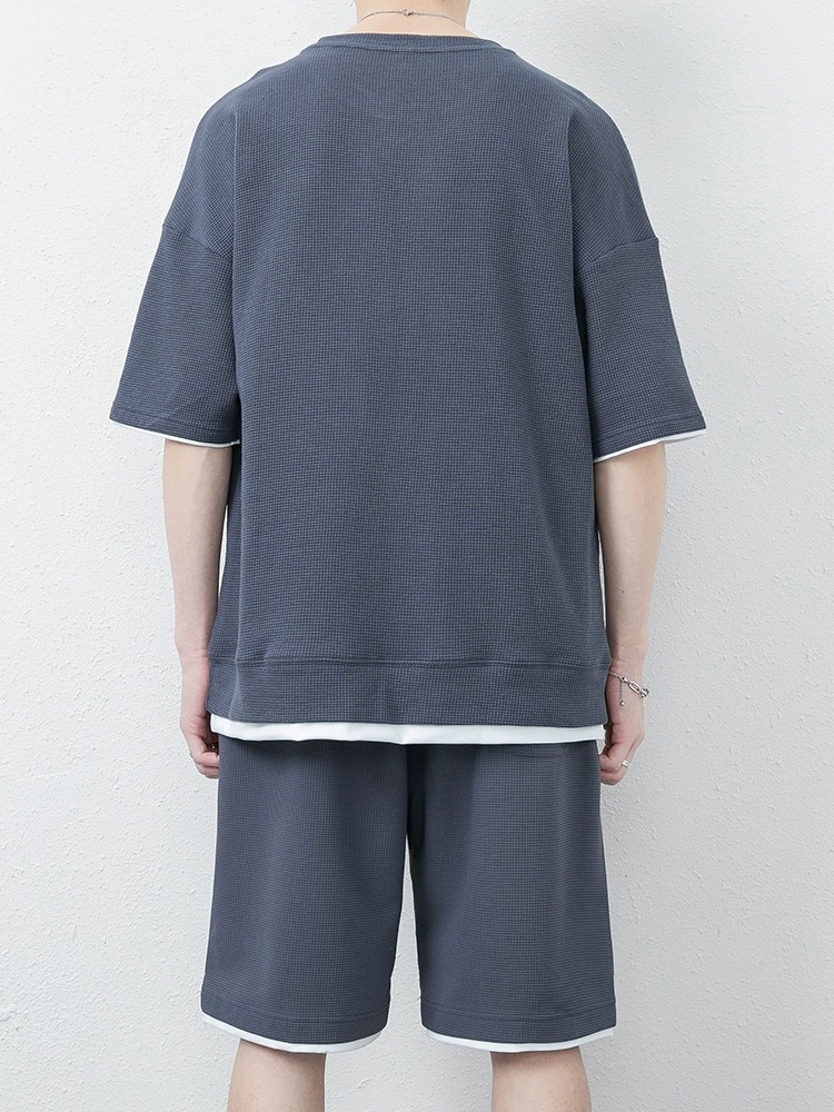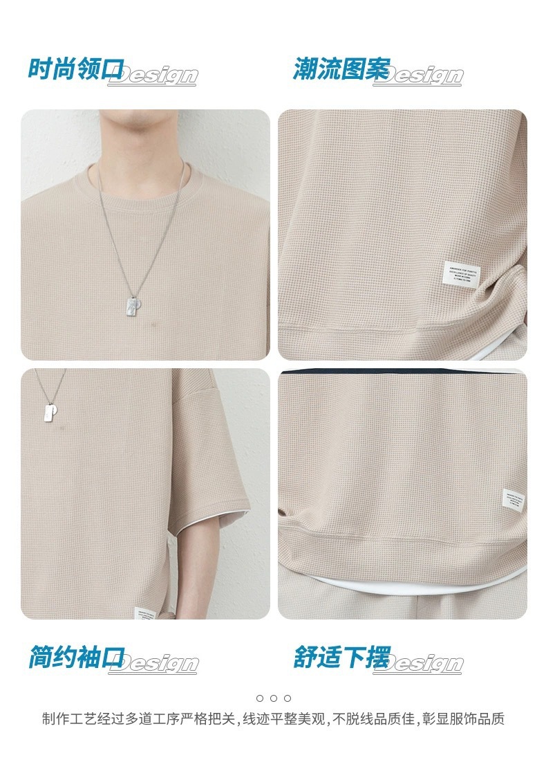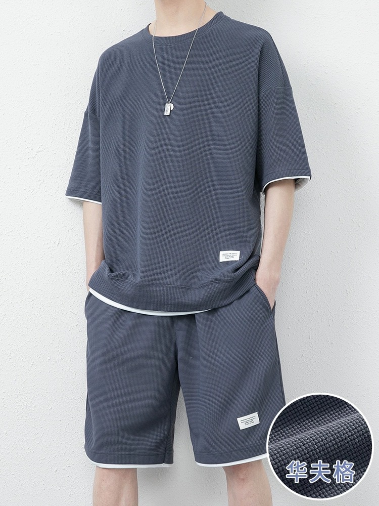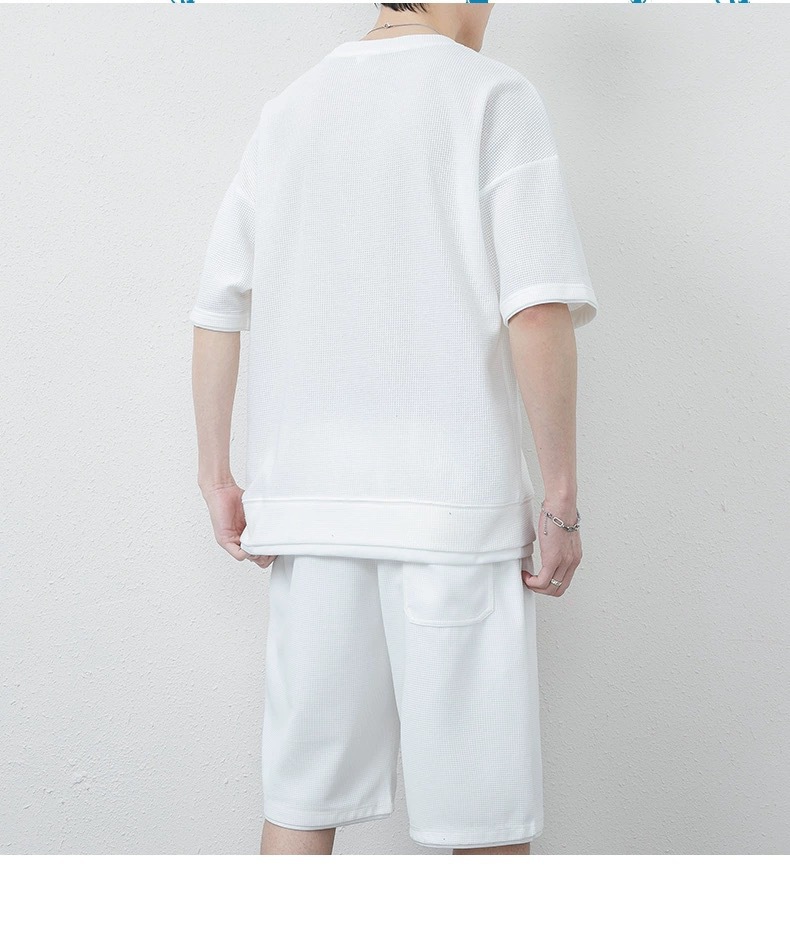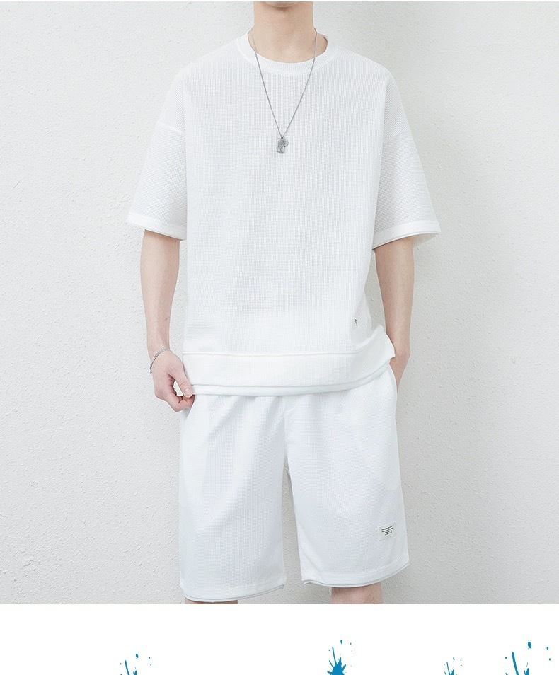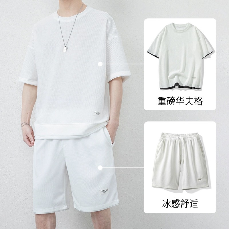 남성용 와플 반바지 정장, 여름 아이스 실크 반팔 남성용 세트, 잘생긴 트렌디 브랜드 캐주얼 스포츠웨어