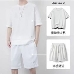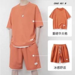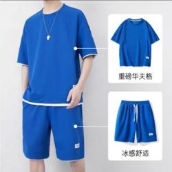 남성용 와플 반바지 정장, 여름 아이스 실크 반팔 남성용 세트, 잘생긴 트렌디 브랜드 캐주얼 스포츠웨어스토어 가기