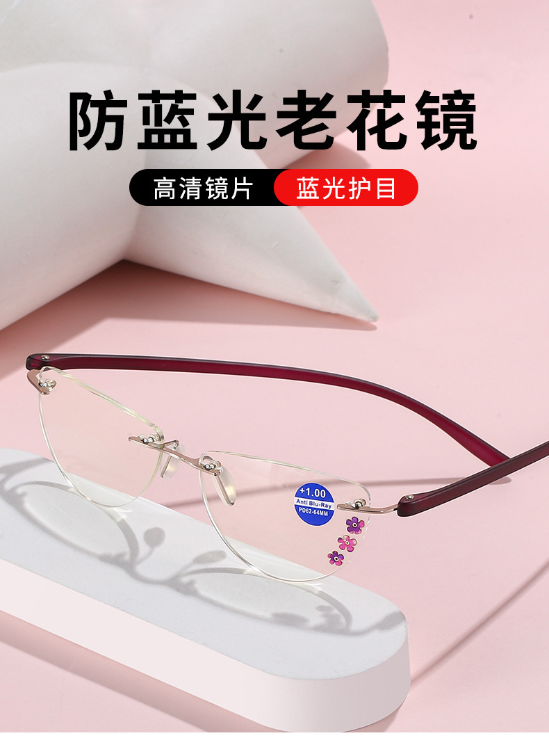 유행 프레임없는 독서 안경 젊은 tr90 안경 다리 새로운 독서 안경 안티 블루 라이트 독서 안경 유럽과 미국의 국경스토어 가기