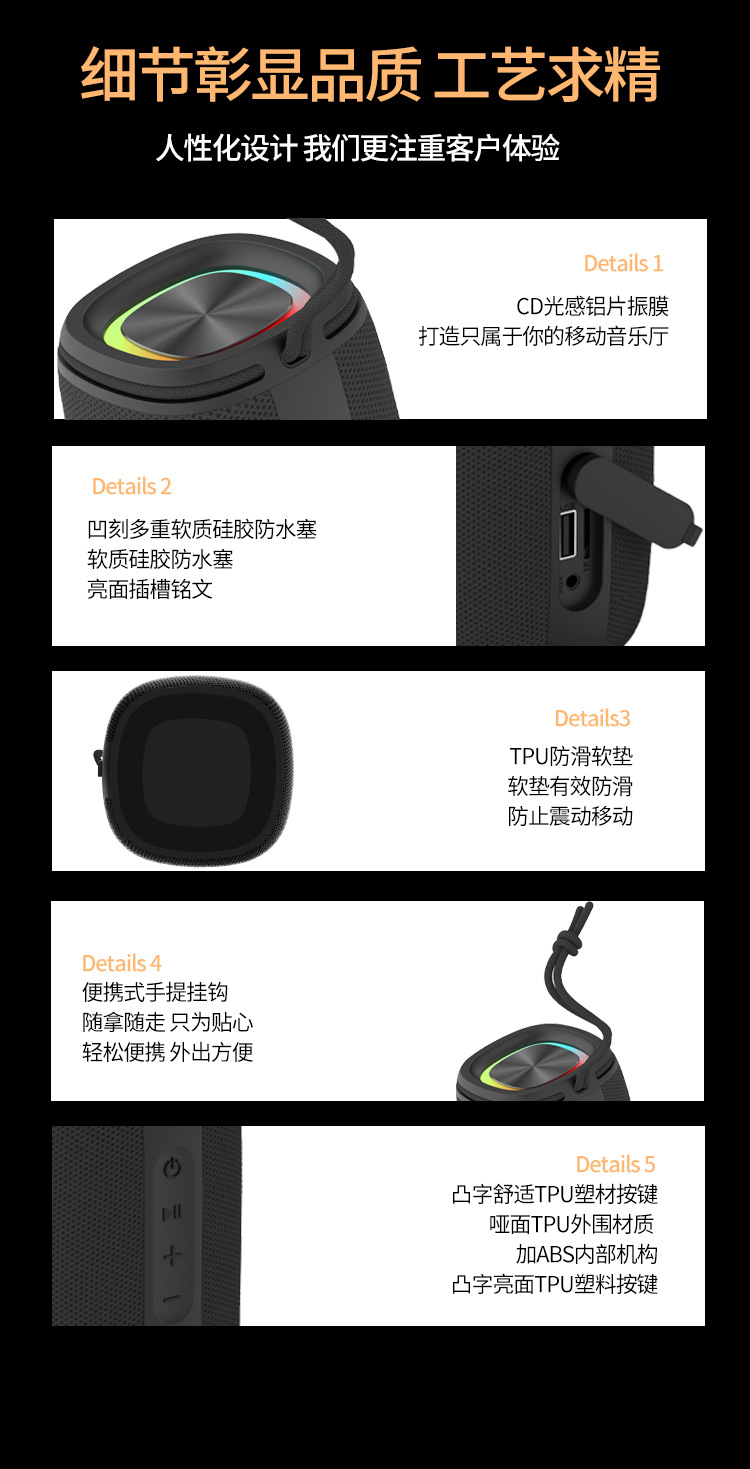 2024 새로운 RGB 야외 블루투스 스피커 방진 미니 무선 선물 전용 상점 휴대용 작은 스테레오