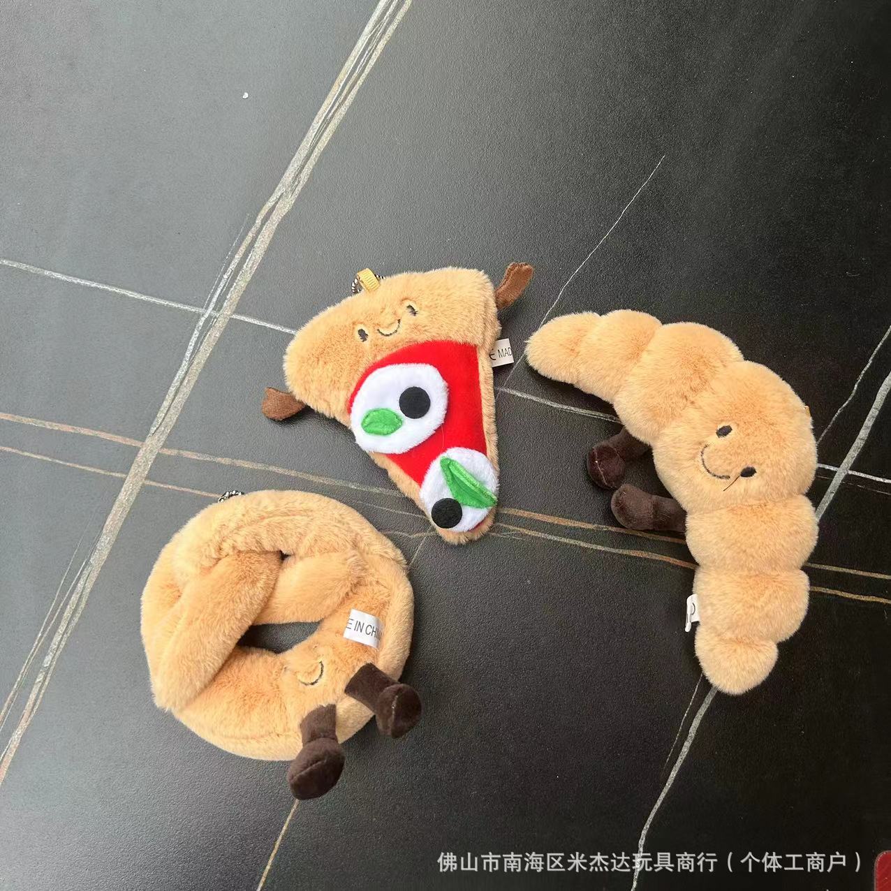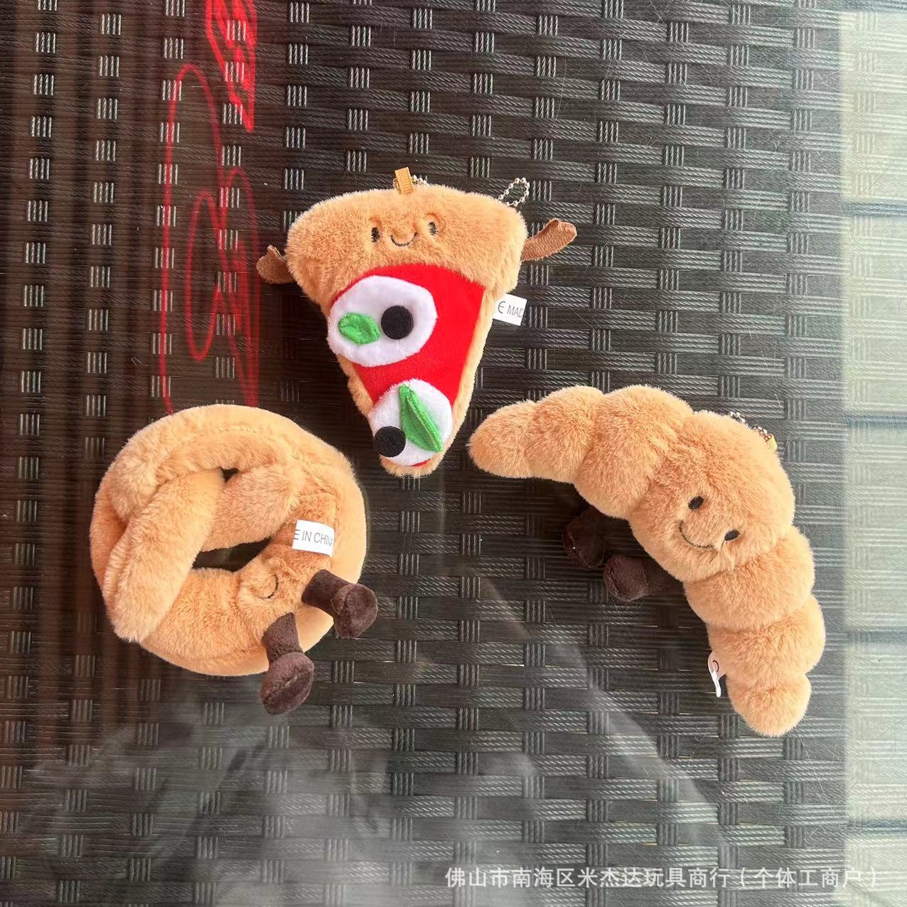 재고 영국 재미 귀여운 크로와상 피자 롤 빵 봉제 인형 가방 펜던트 게임 도시 아기 기계를 잡아라