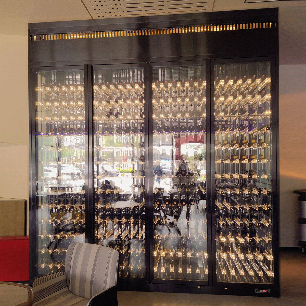裕曼通丰专业定制不锈钢酒柜酒架,内部陈列方式丰富多彩