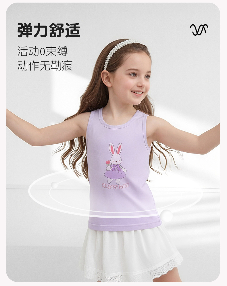 2피스 세트 봄 여름 신상 라이크라 코튼 여아 민소매 조끼 이너웨어, 민소매 아동 조끼 이너웨어, 중대형 아동용 베이스 레이어