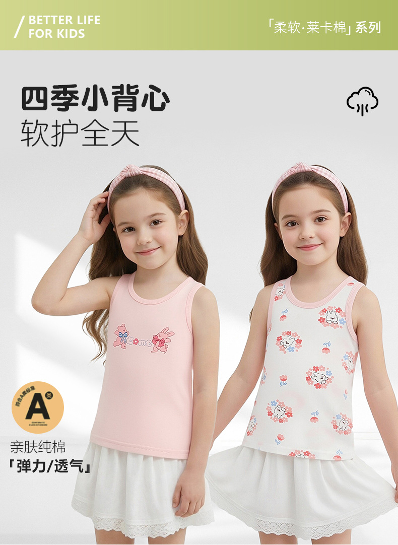 2피스 세트 봄 여름 신상 라이크라 코튼 여아 민소매 조끼 이너웨어, 민소매 아동 조끼 이너웨어, 중대형 아동용 베이스 레이어스토어 가기