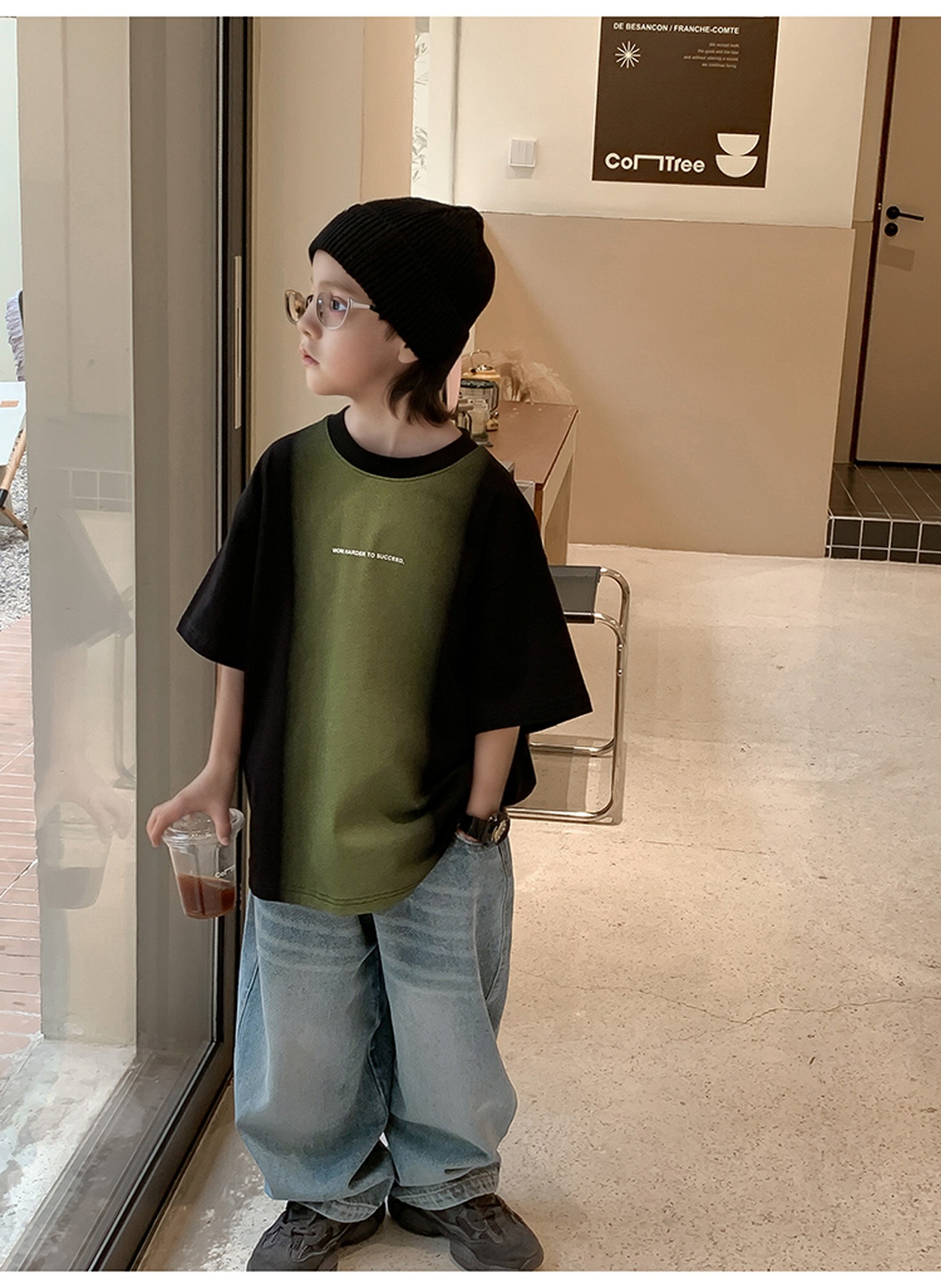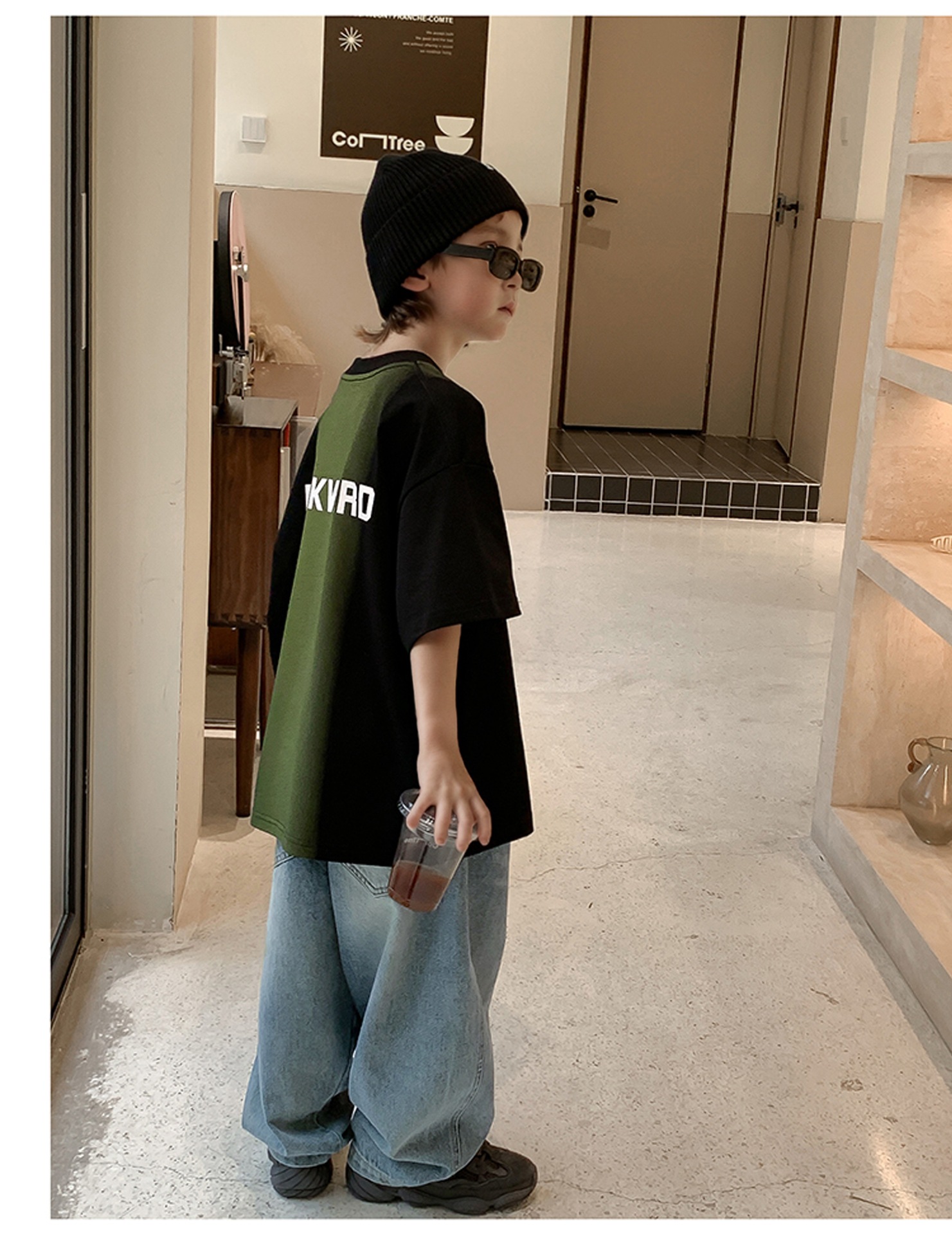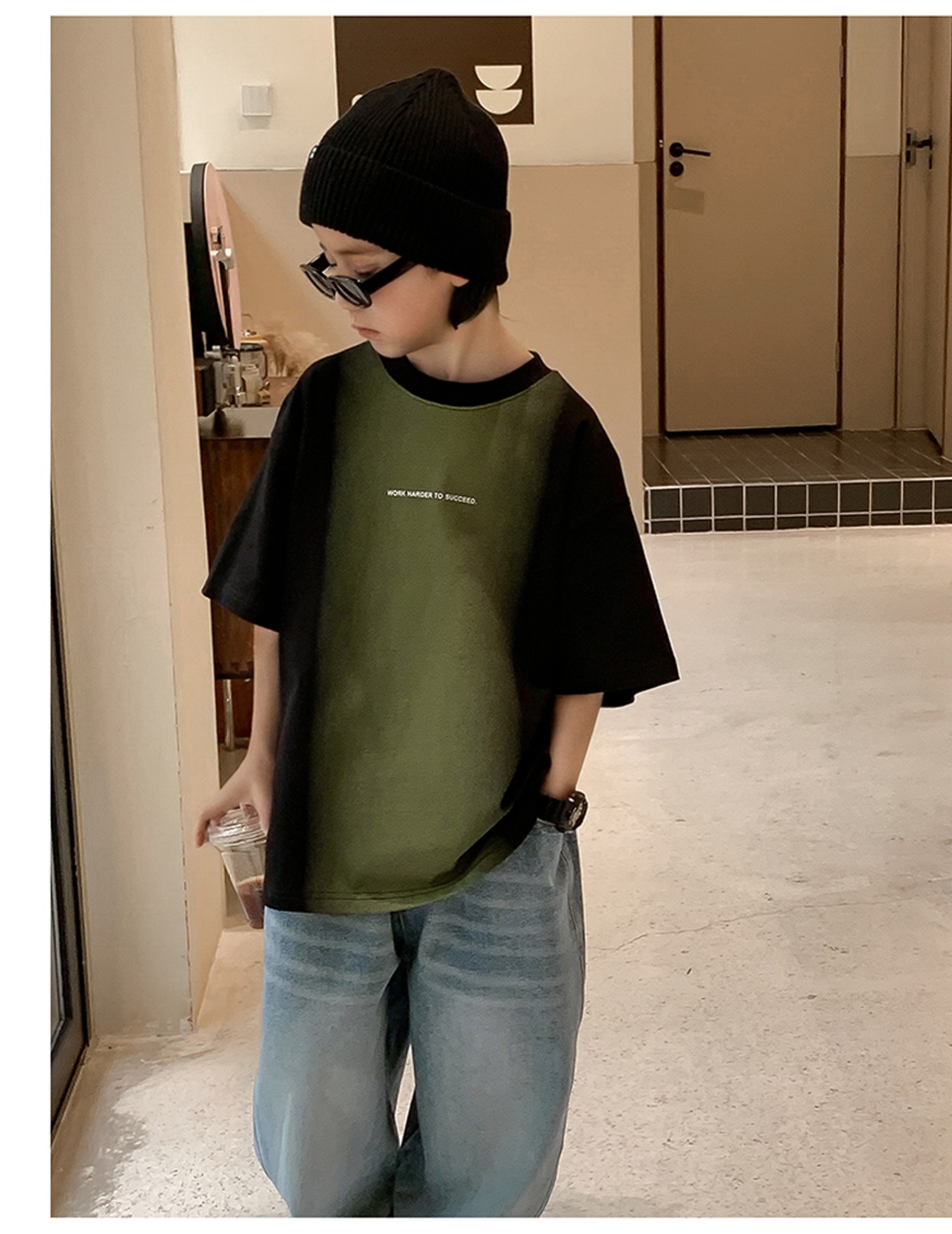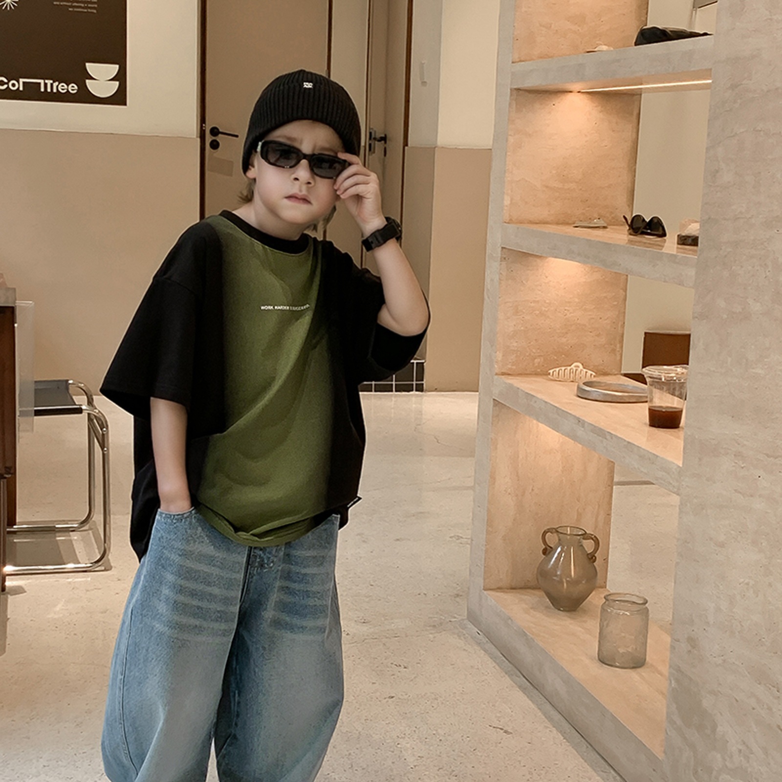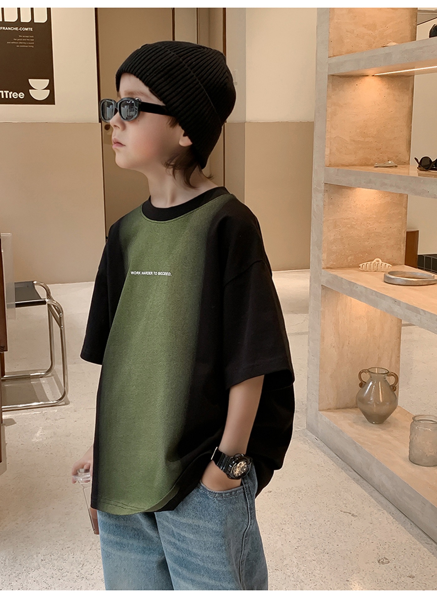 봄 여름 의류 소년 큰 어린이 라운드 넥 티셔츠 반팔 2025 새로운 유행 어린이 반팔 한국 스타일 베이비 탑 유행 t스토어 가기