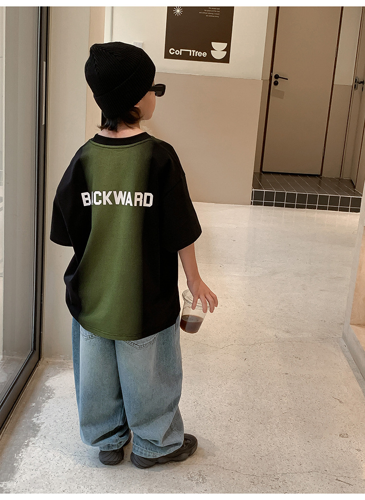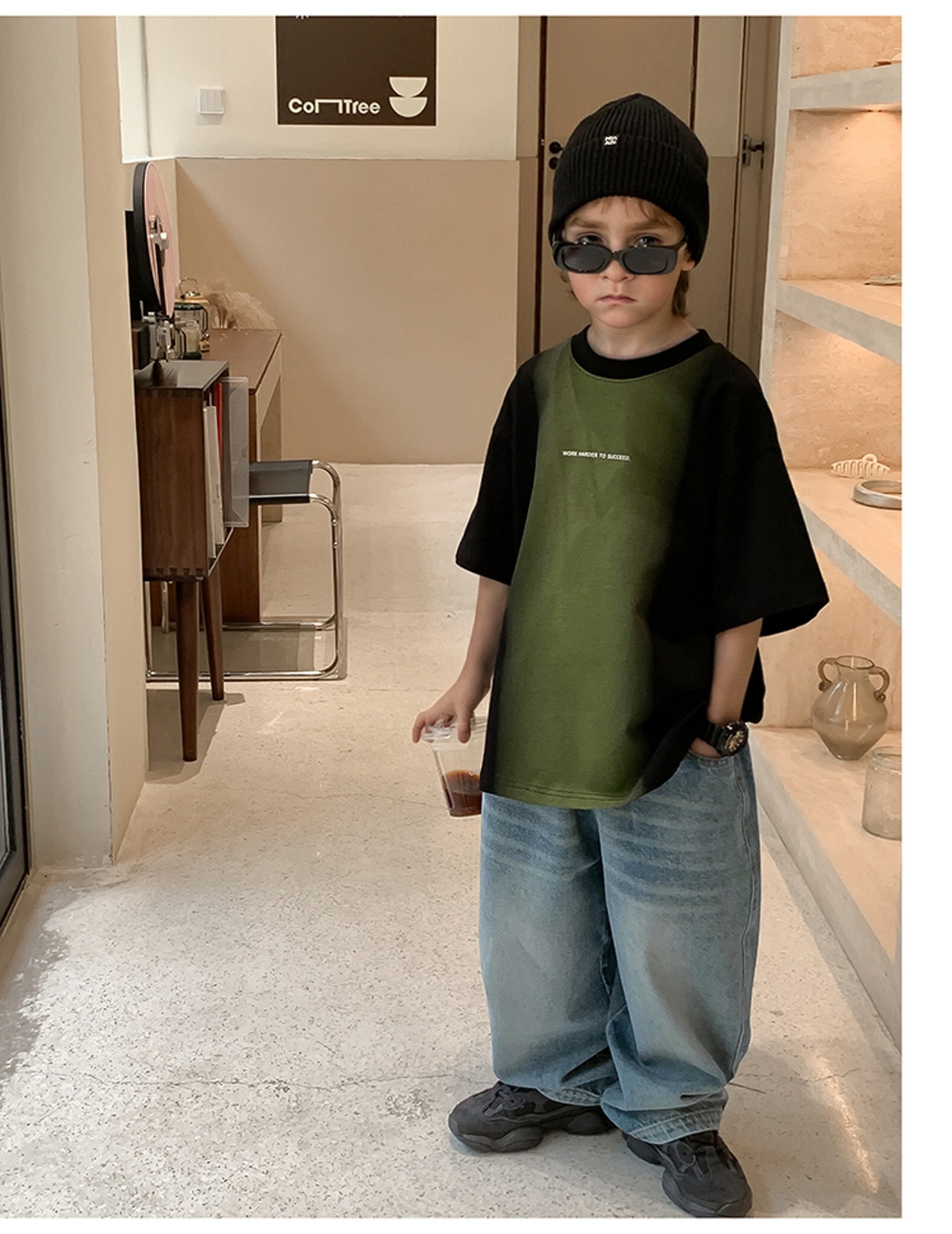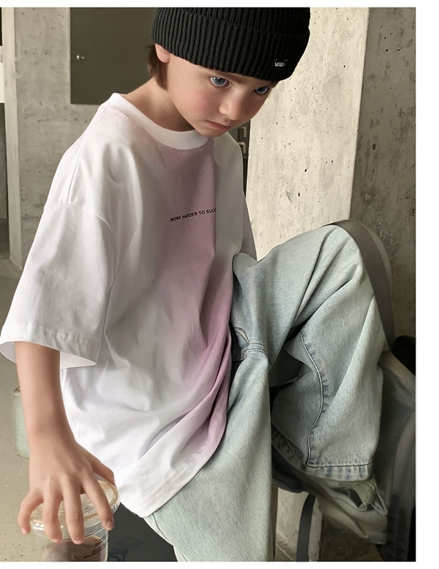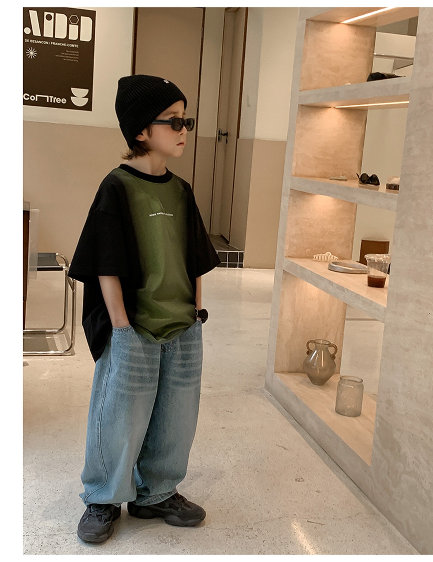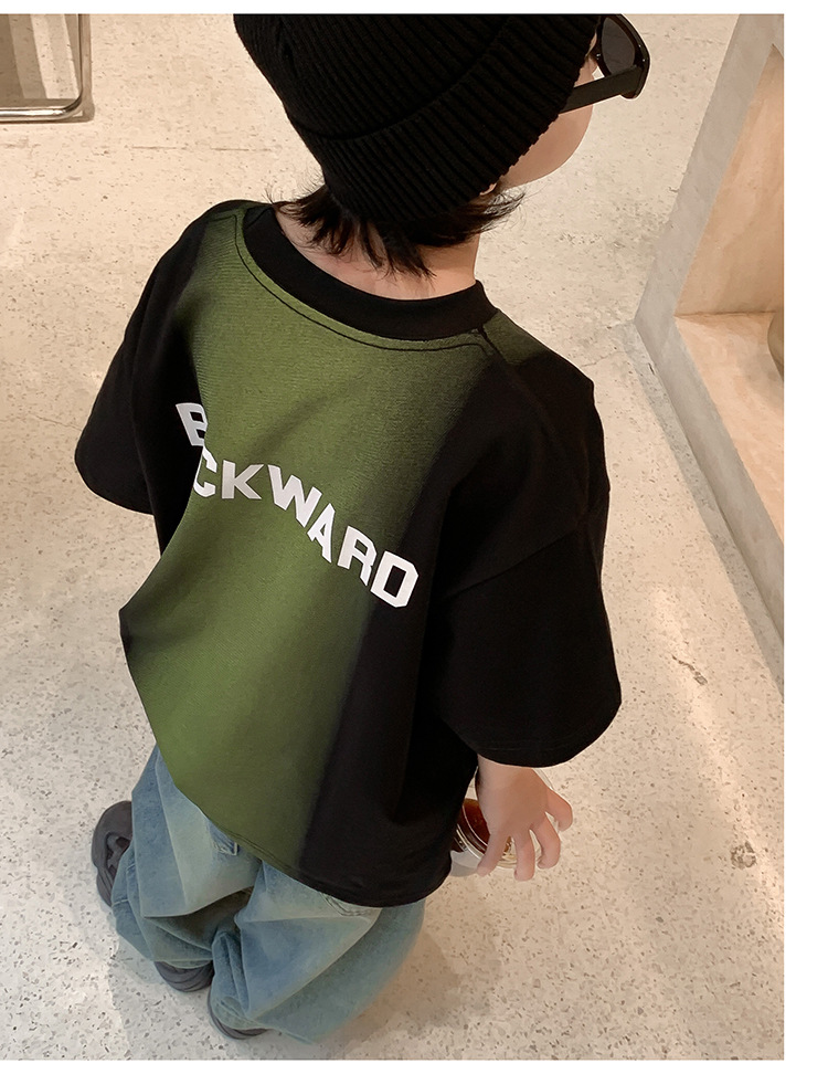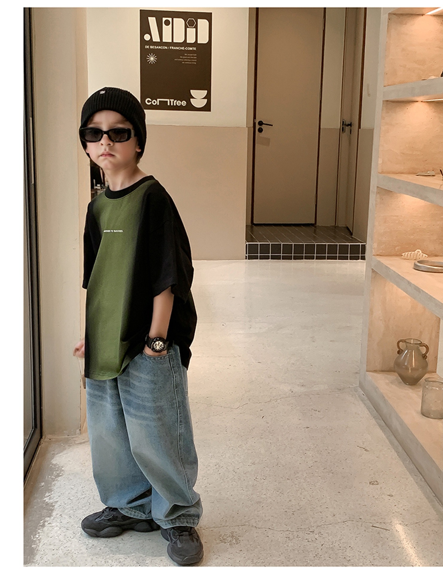 봄 여름 의류 소년 큰 어린이 라운드 넥 티셔츠 반팔 2025 새로운 유행 어린이 반팔 한국 스타일 베이비 탑 유행 t스토어 가기