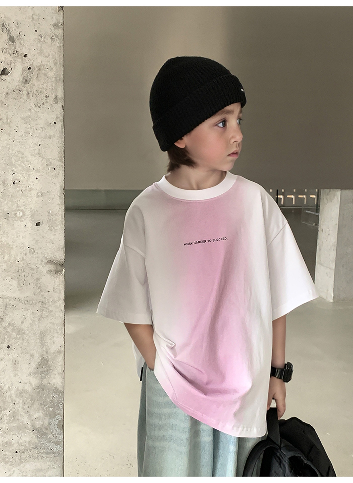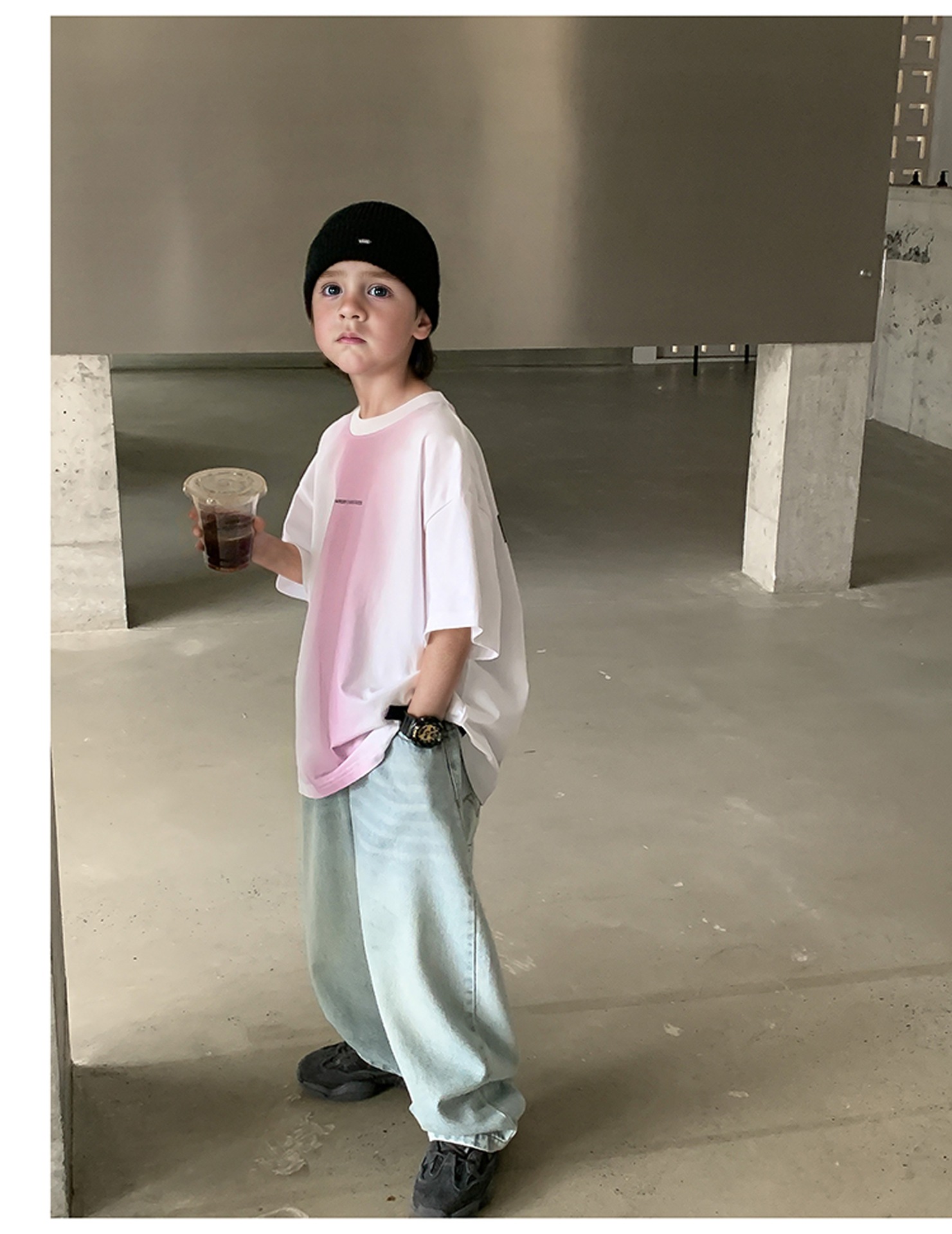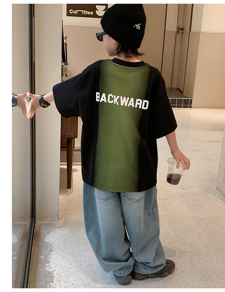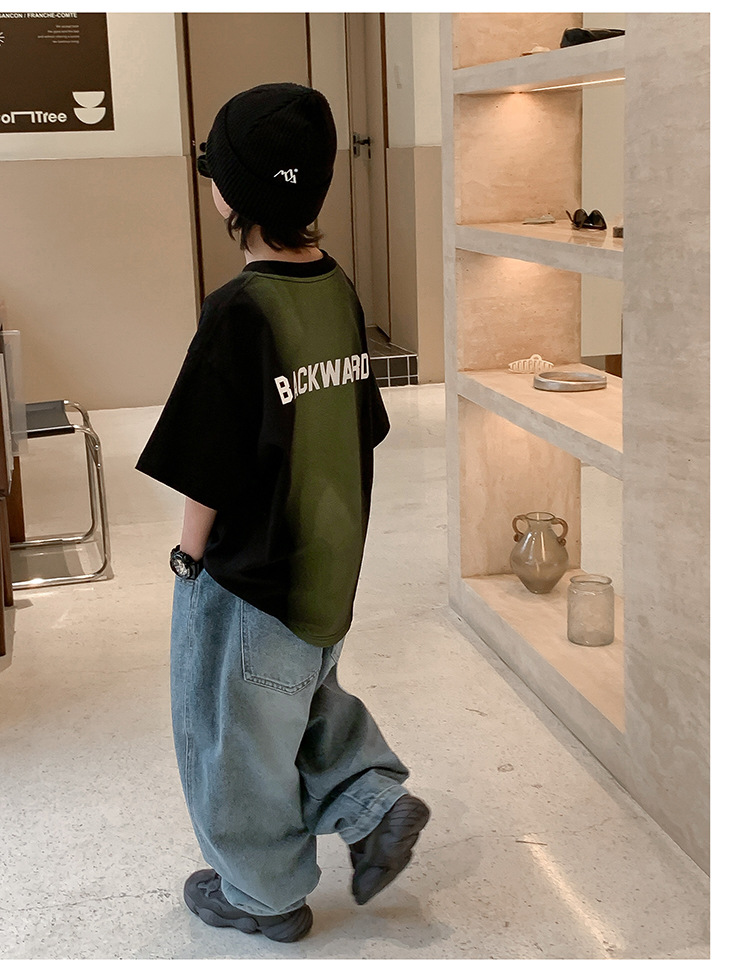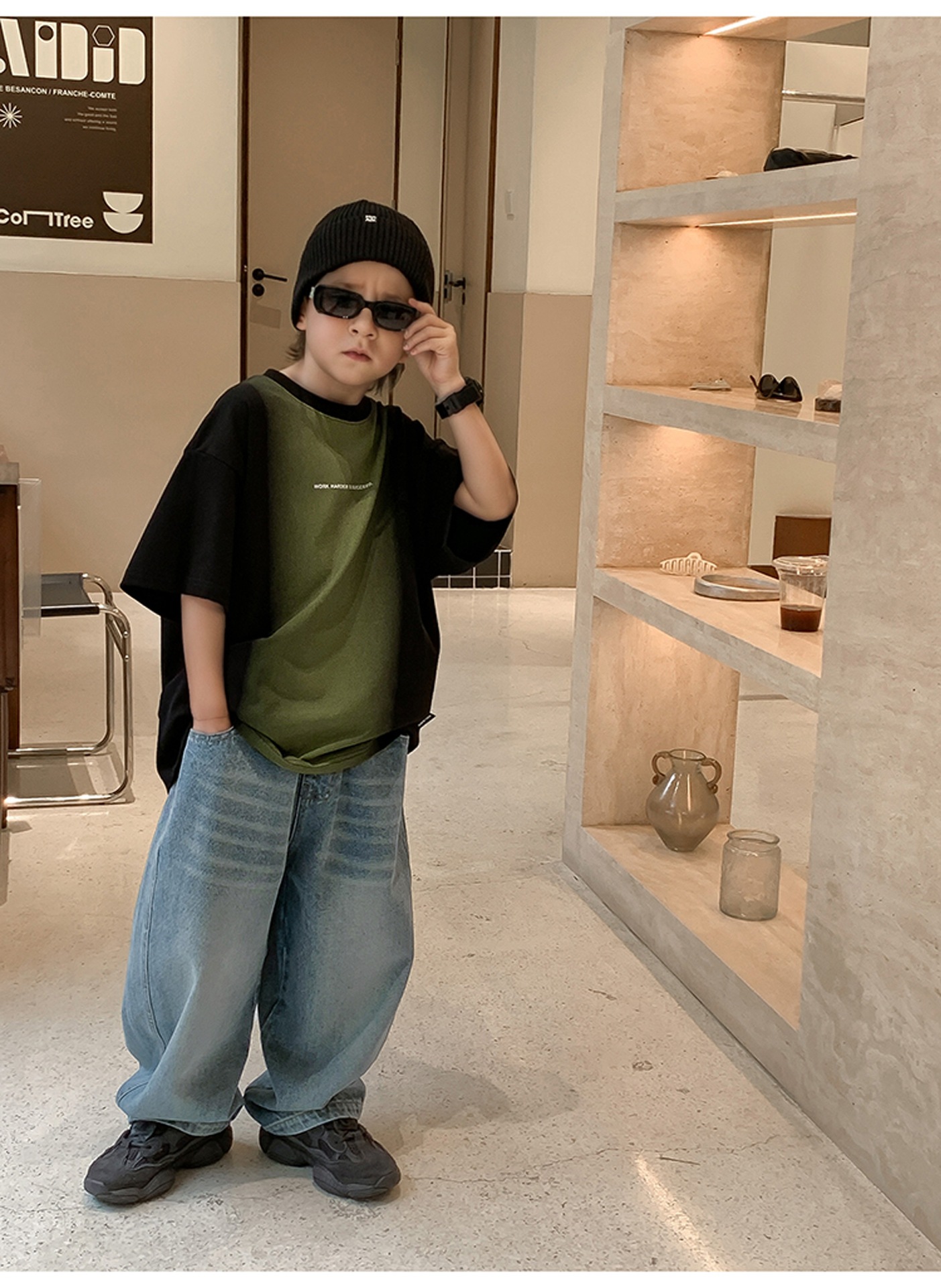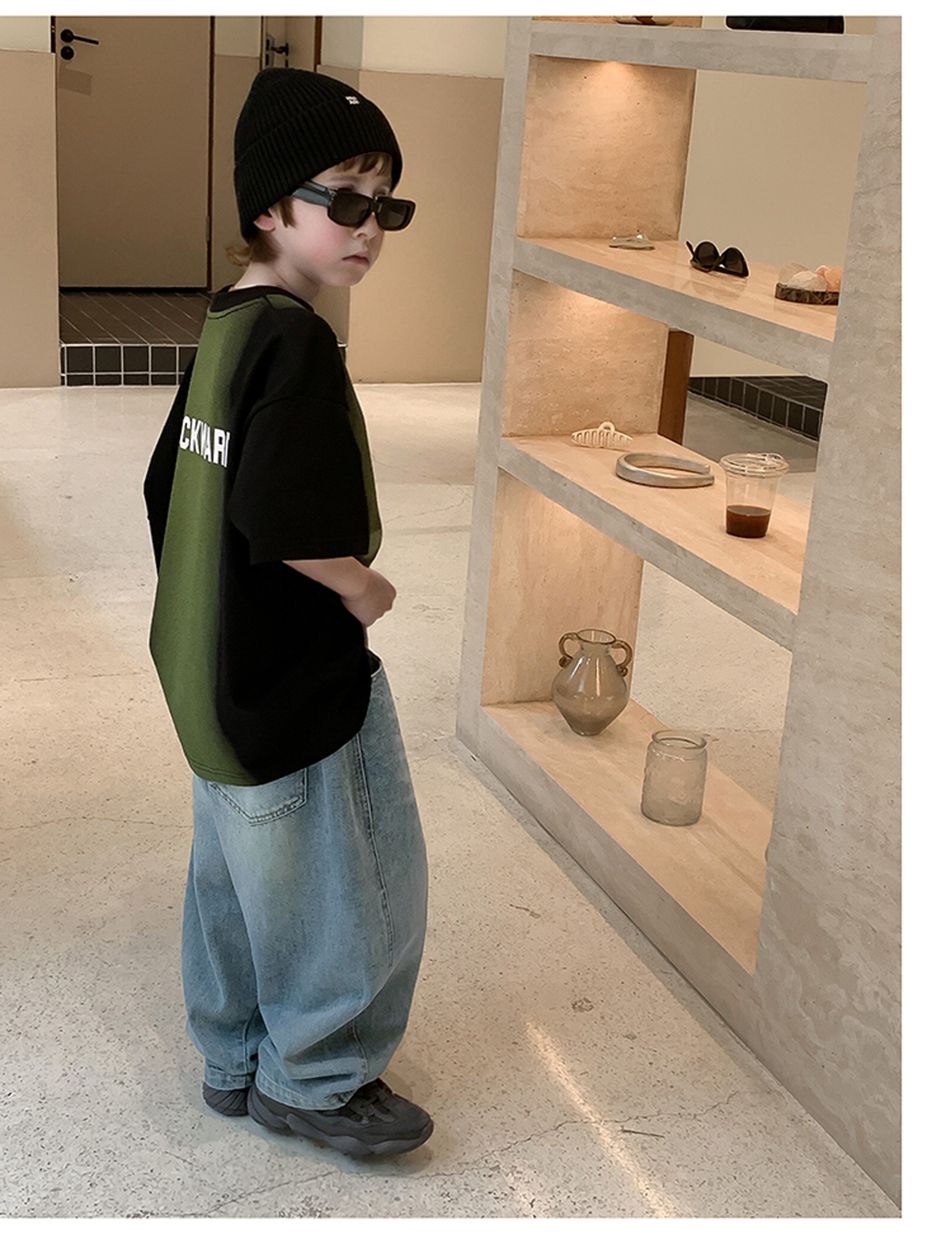 봄 여름 의류 소년 큰 어린이 라운드 넥 티셔츠 반팔 2025 새로운 유행 어린이 반팔 한국 스타일 베이비 탑 유행 t스토어 가기