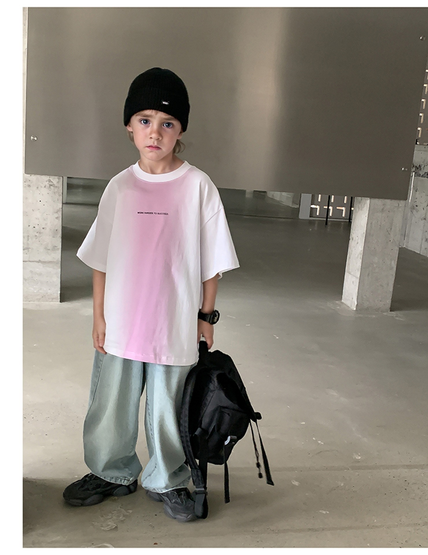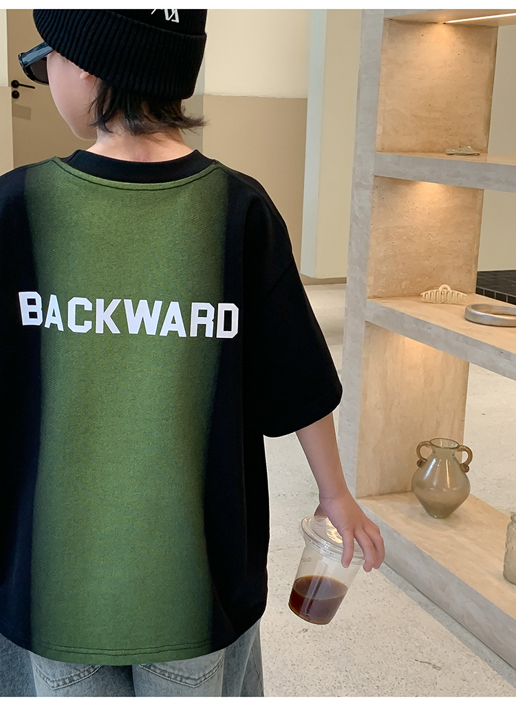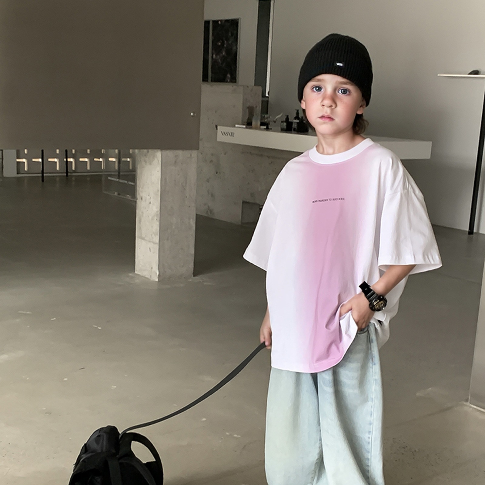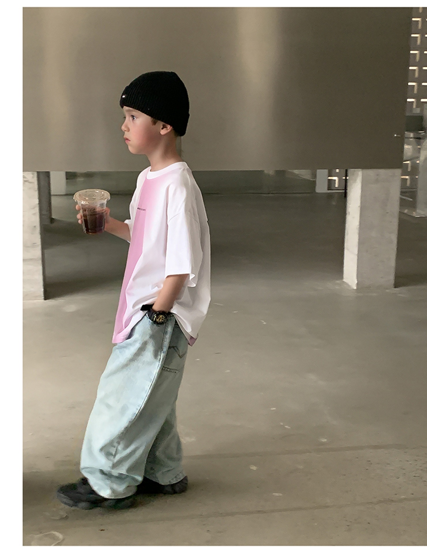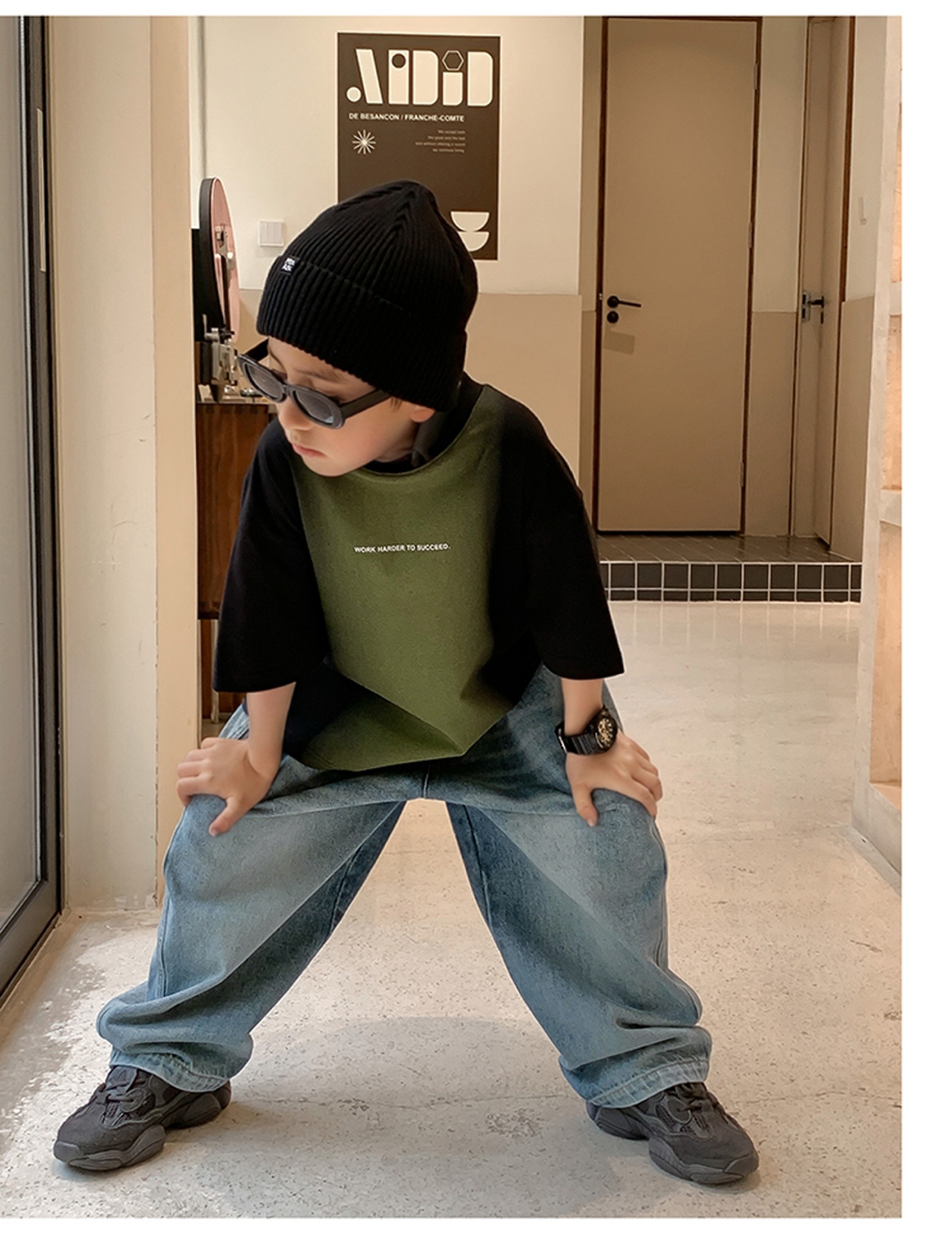 봄 여름 의류 소년 큰 어린이 라운드 넥 티셔츠 반팔 2025 새로운 유행 어린이 반팔 한국 스타일 베이비 탑 유행 t스토어 가기