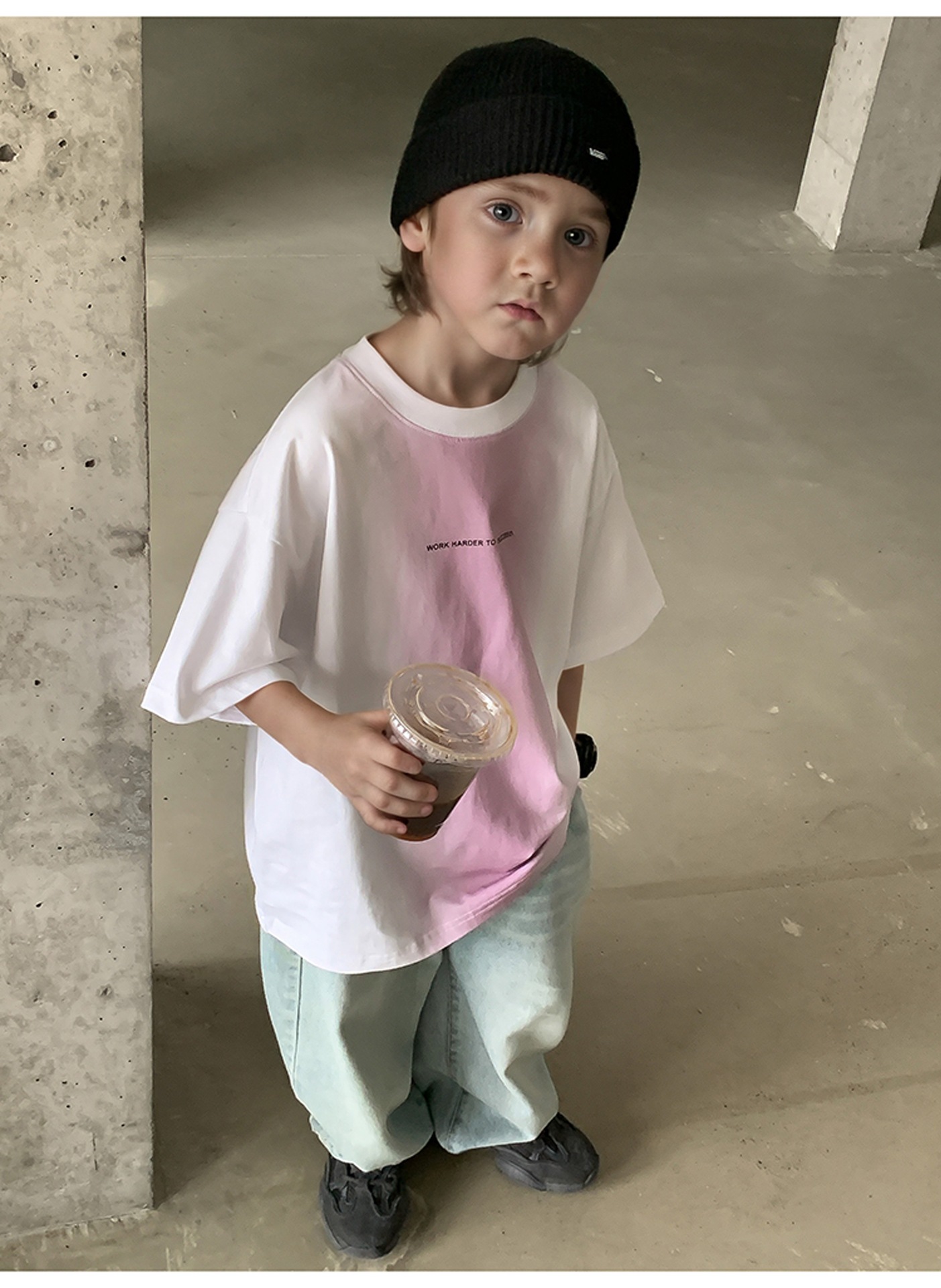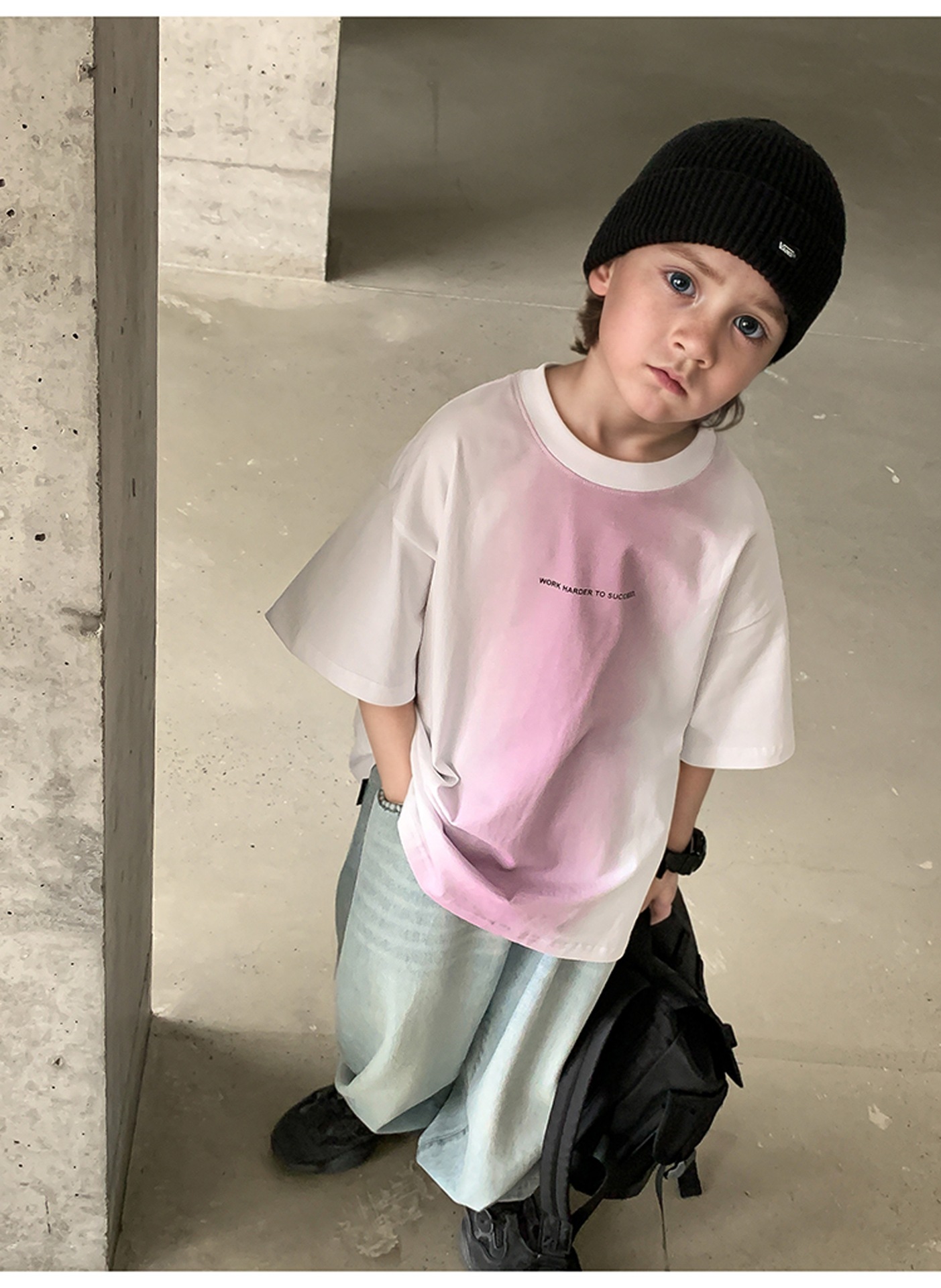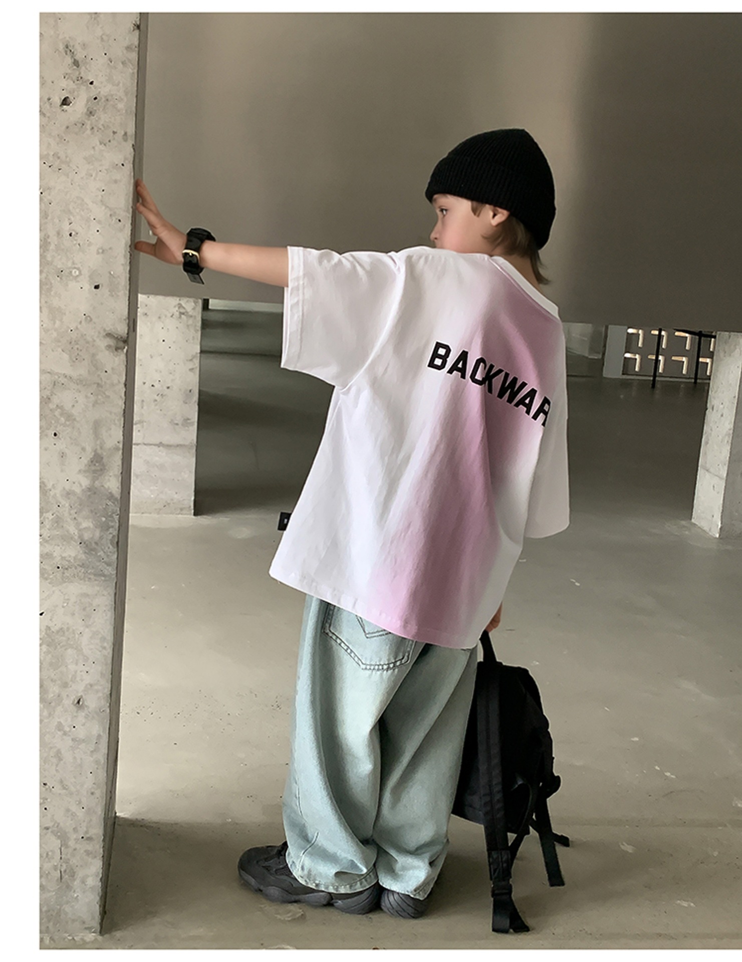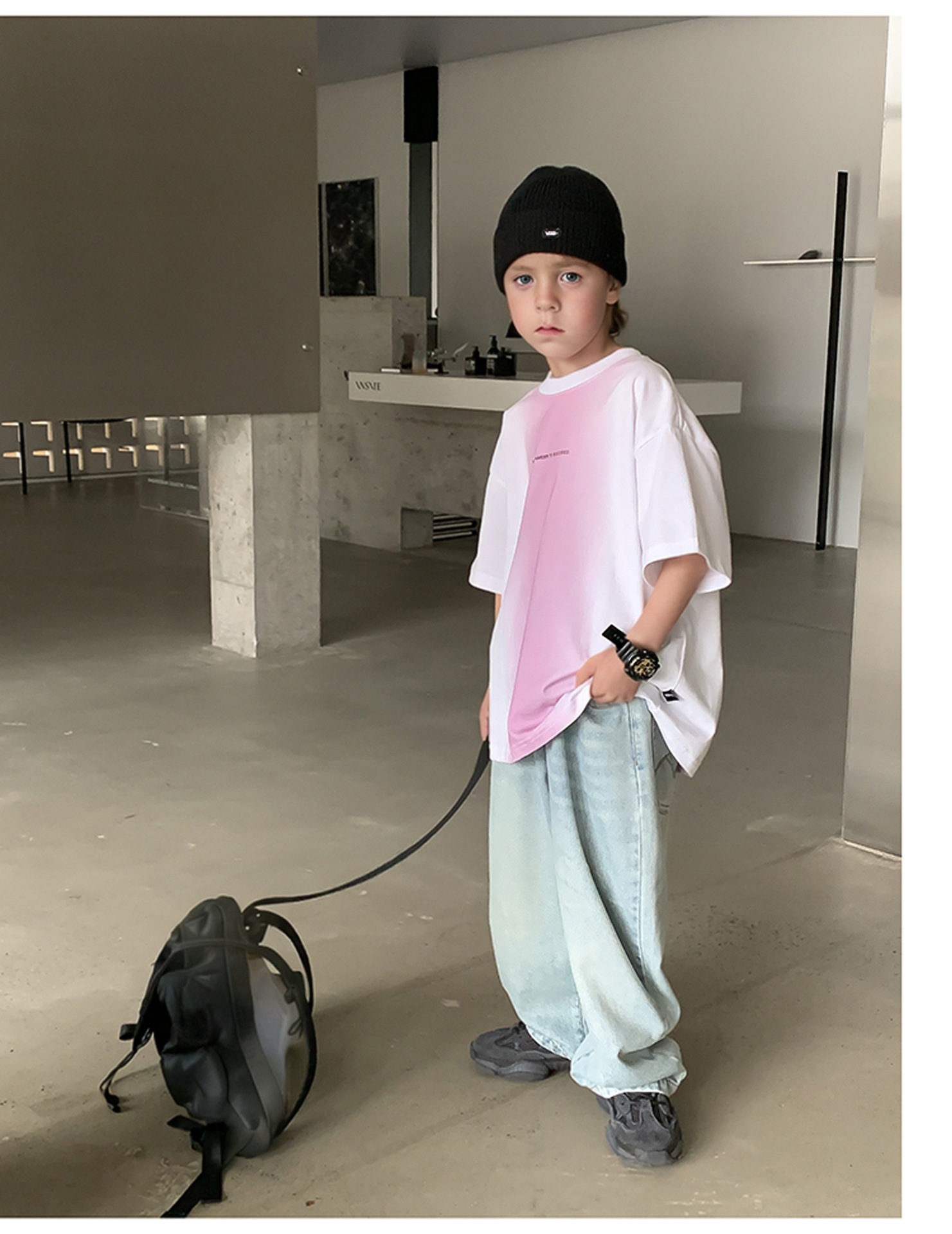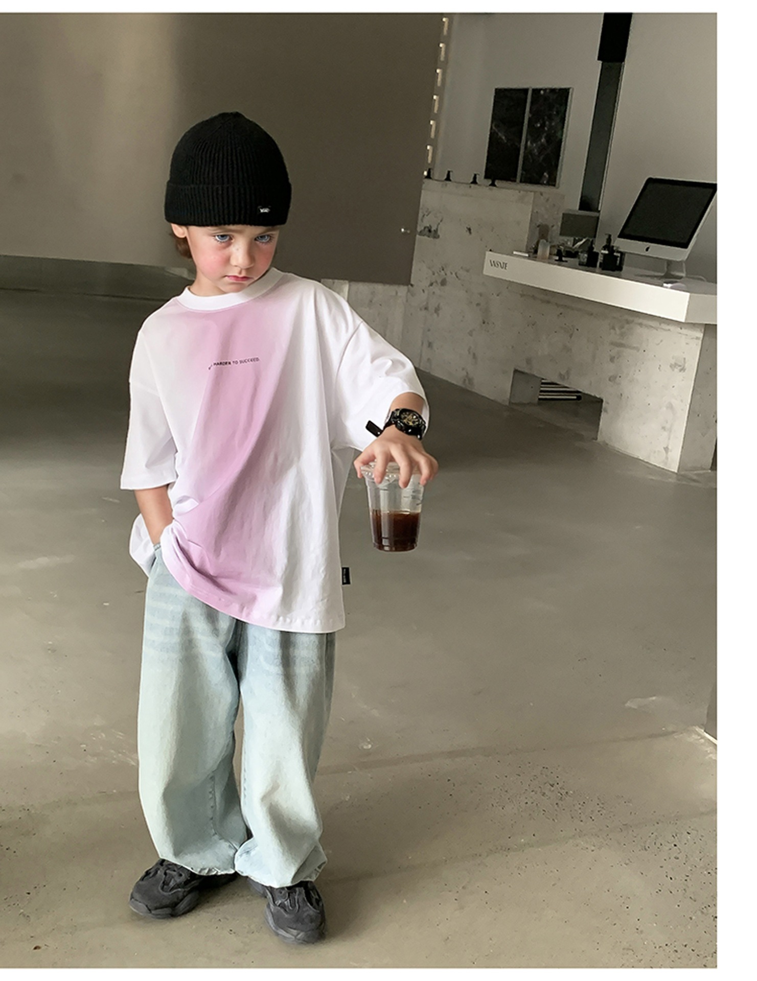 봄 여름 의류 소년 큰 어린이 라운드 넥 티셔츠 반팔 2025 새로운 유행 어린이 반팔 한국 스타일 베이비 탑 유행 t스토어 가기
