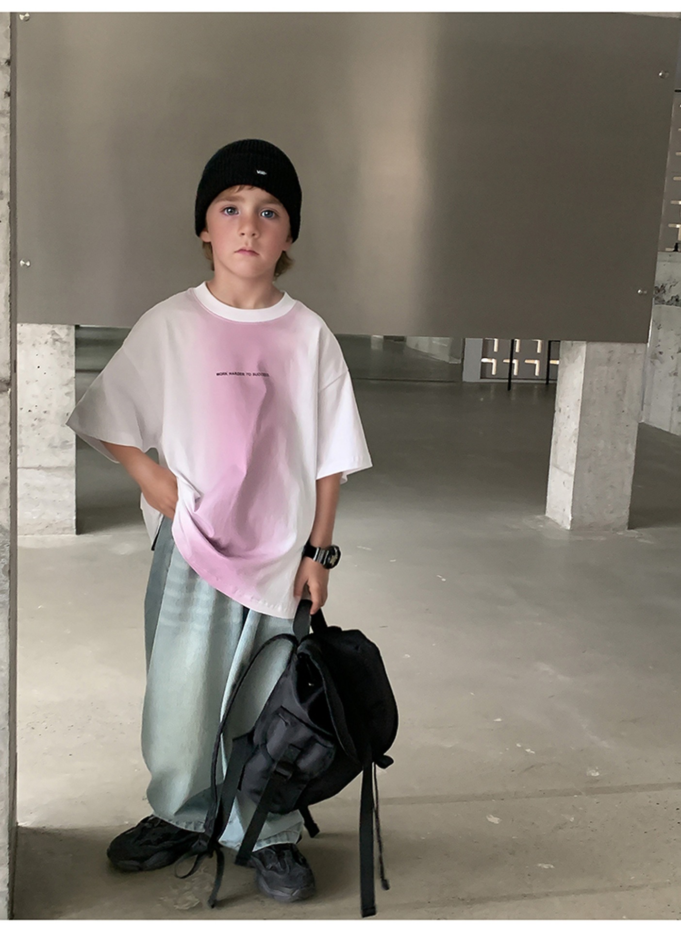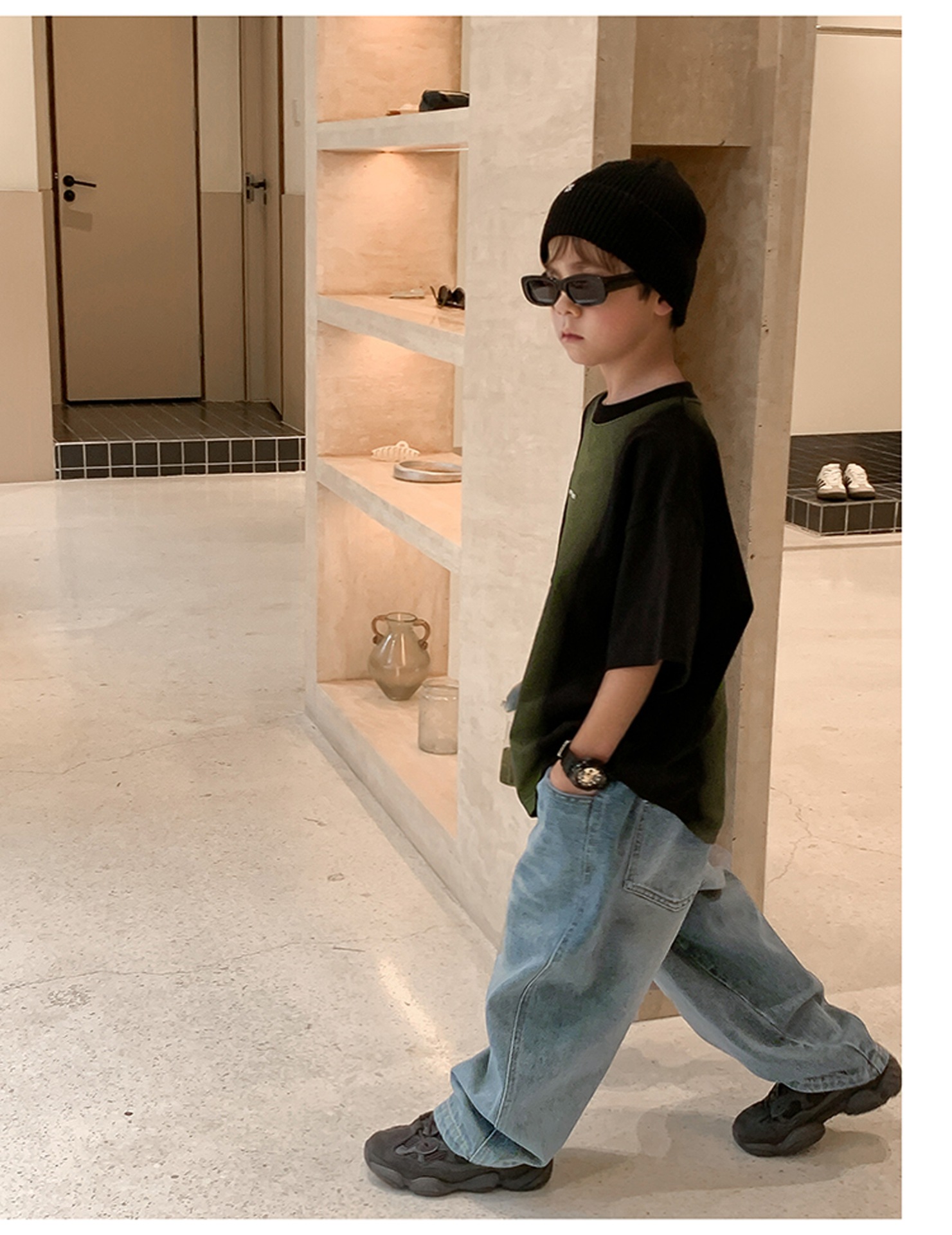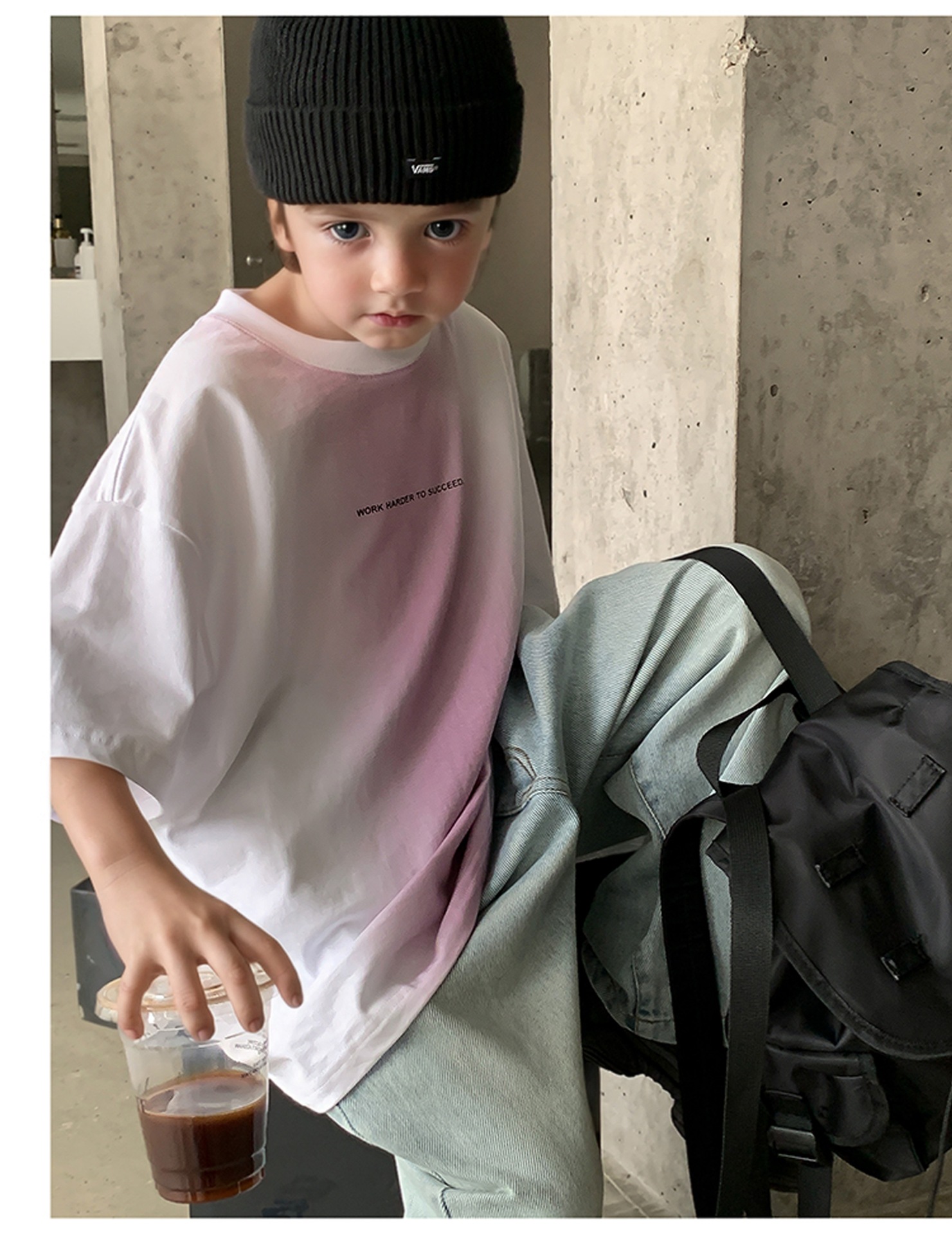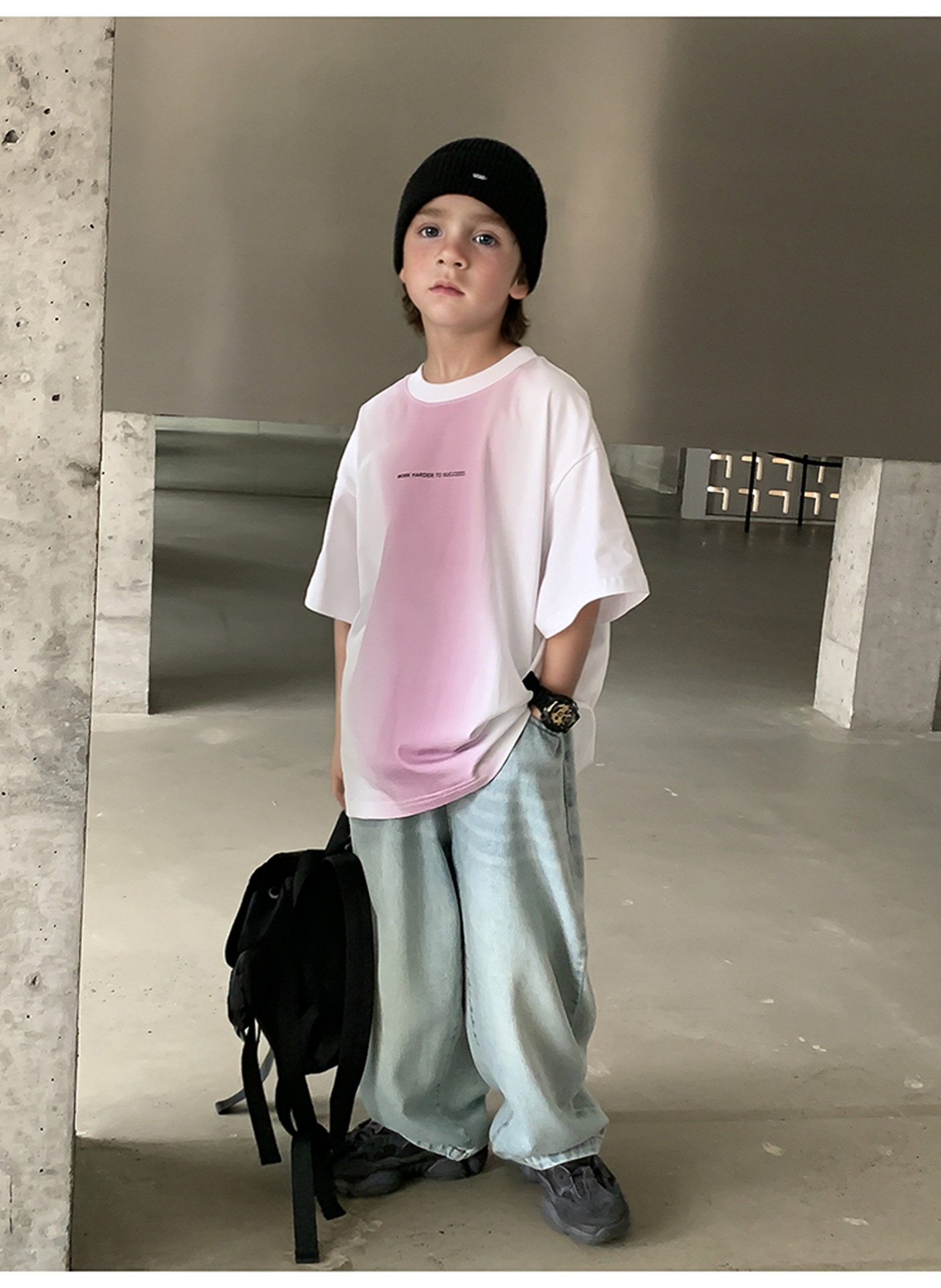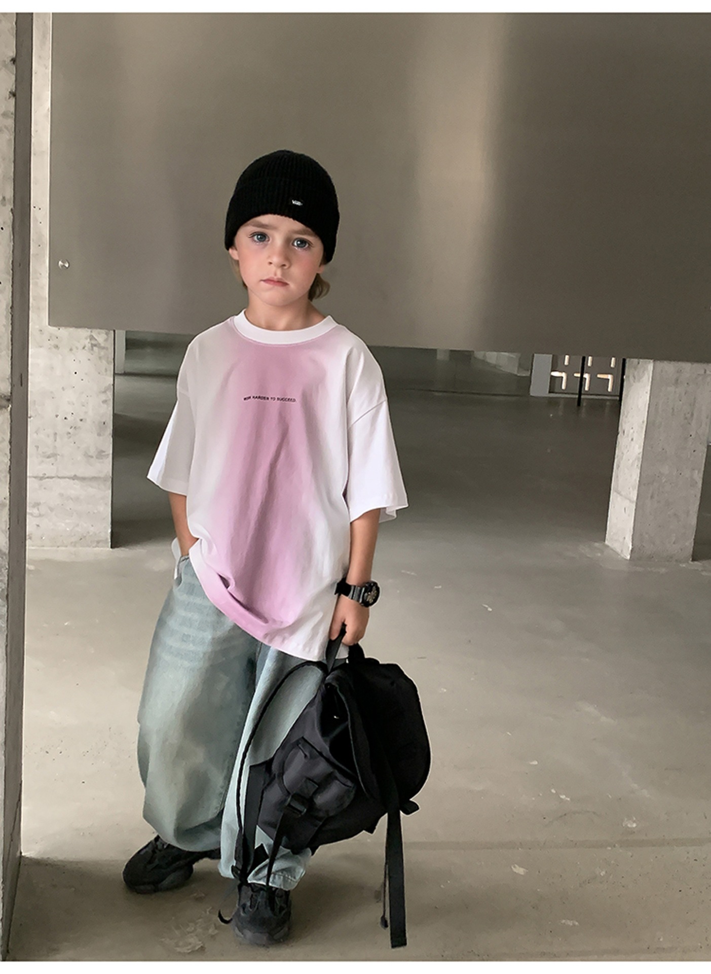 봄 여름 의류 소년 큰 어린이 라운드 넥 티셔츠 반팔 2025 새로운 유행 어린이 반팔 한국 스타일 베이비 탑 유행 t스토어 가기