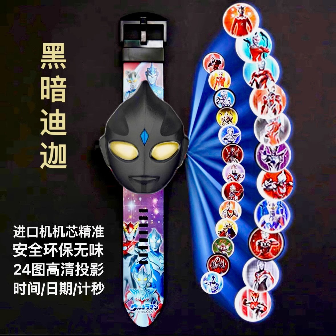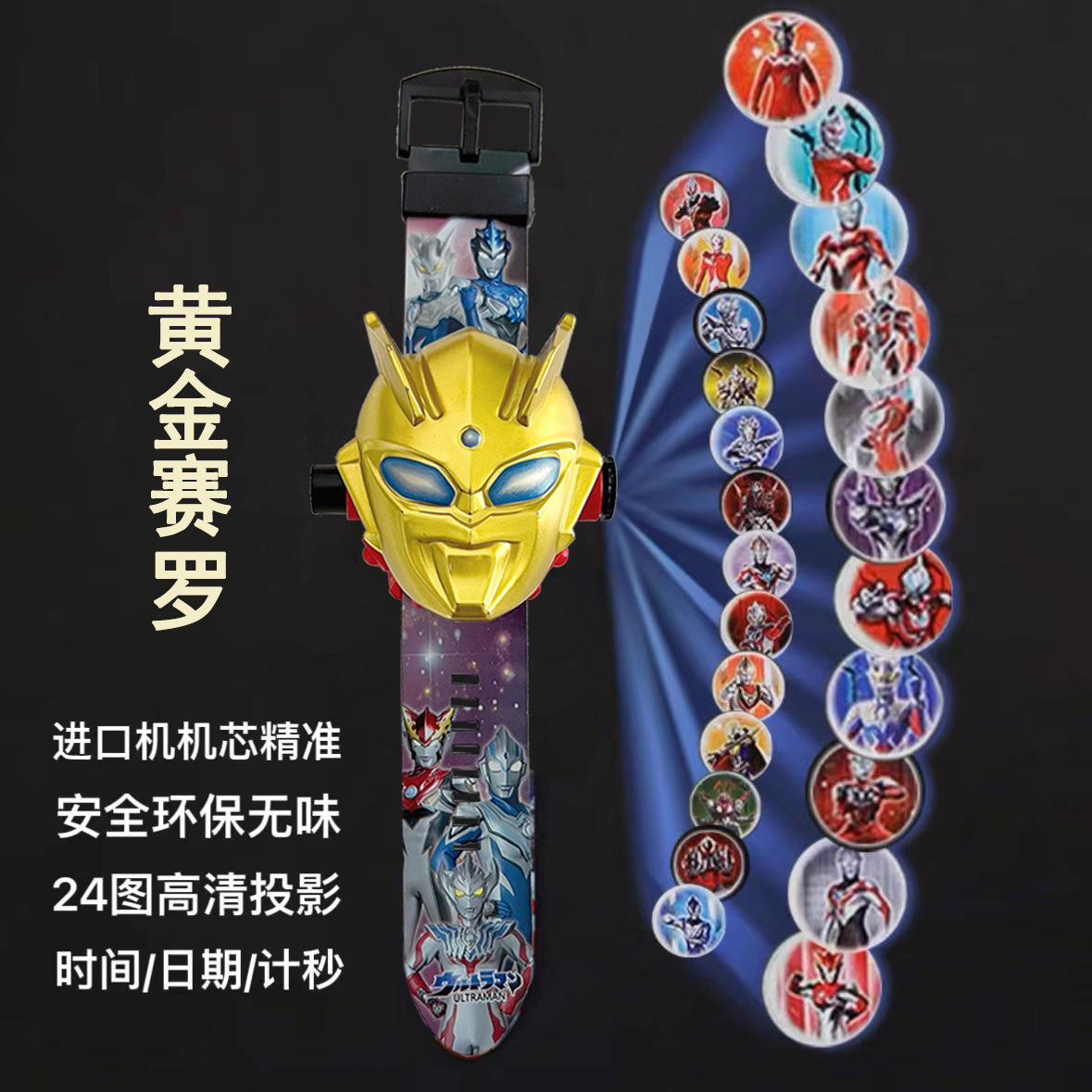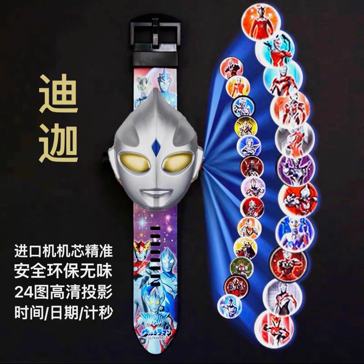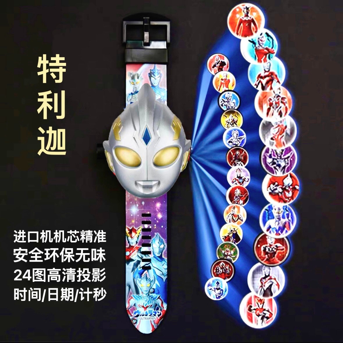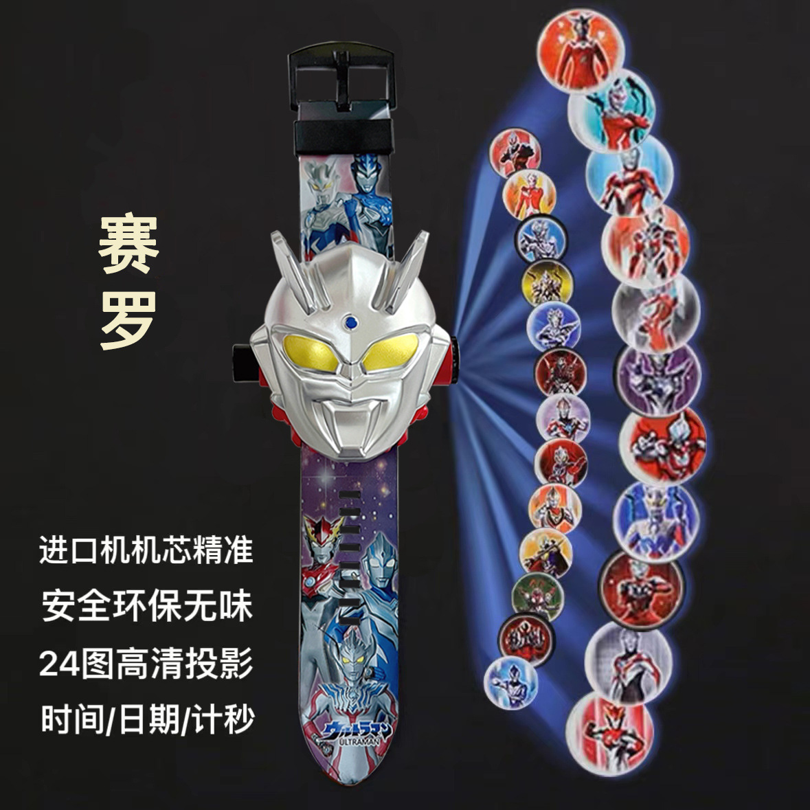 어린이 버전 Selo Ultraman 프로젝션 시계 장난감 DiGa Jie De 소년과 소녀 만화 발광 전자 시계 선물