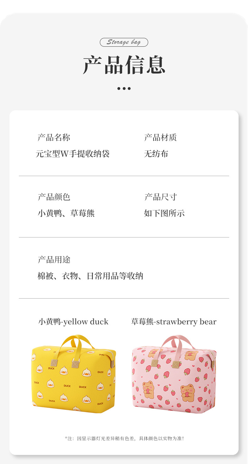 저장 가방 휴대용 귀여운 방수 수분 방지 대용량 의류 퀼트 저장 인공물 휴대용 이동 포장스토어 가기