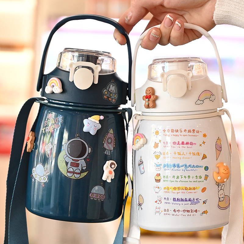 새로운 대용량 만화 어린이 보온병 컵 바운스 밀짚 휴대용 큰 배 컵 학생 물 컵
