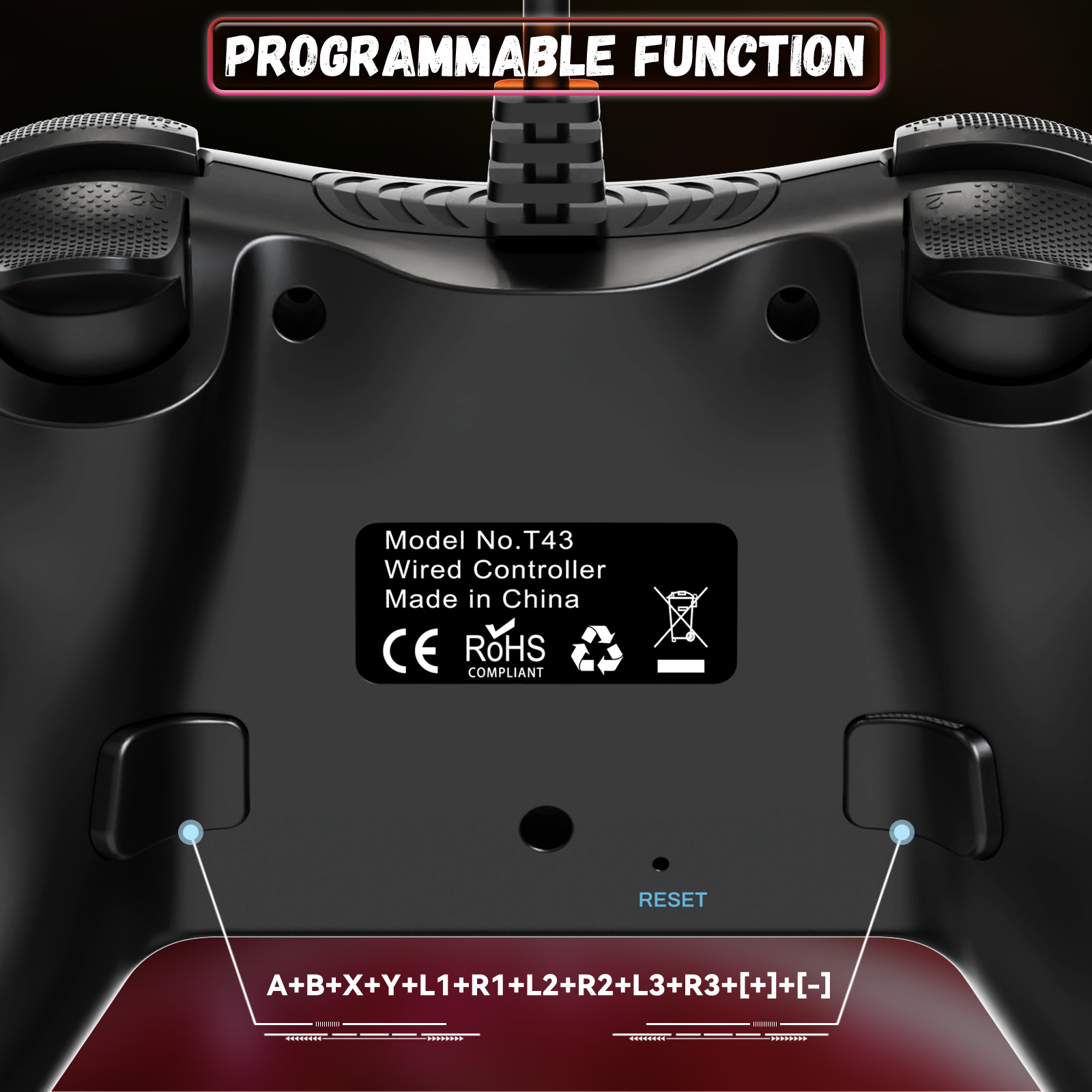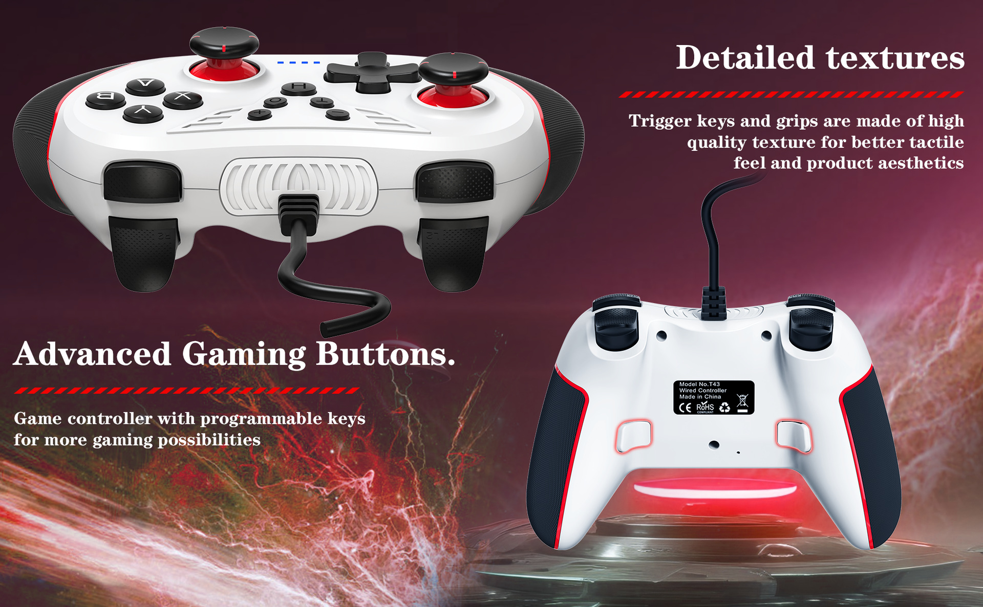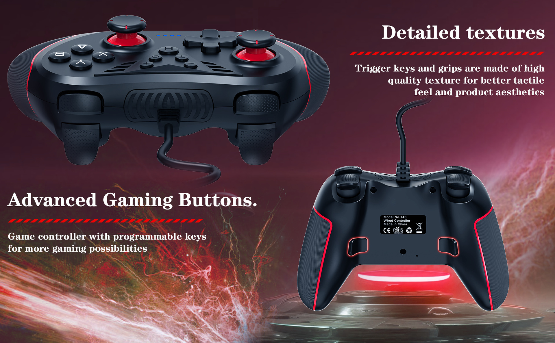 本产品带有宏编程,震动,连发功能,线长2米本产品是一款支持在PC(XP/IN7/WIN8/WIN10)、N-S主机平台上使用的有线游戏手柄。配备新技术)自带映射按键,丰富了玩家的体验,是所有游戏发烧友的优选方案。