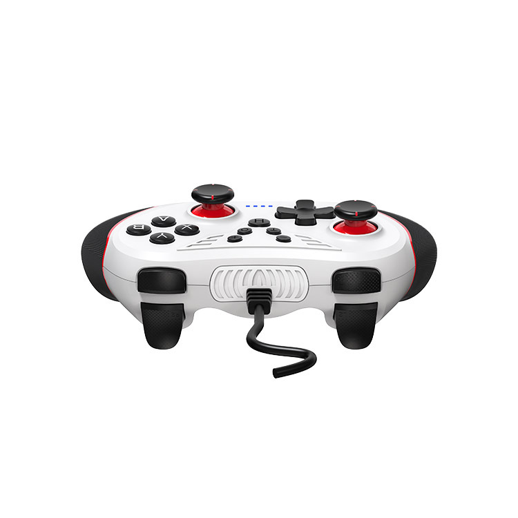 将NS主机放置于主机底座,手柄通过USB数据线与主机底座连接,操作手柄(如按HOME键)后主机显示连接成功,主机分配手柄通道灯长亮。(连接主机时,A、BX、Y键按照N-S手柄按键布局输出功能)