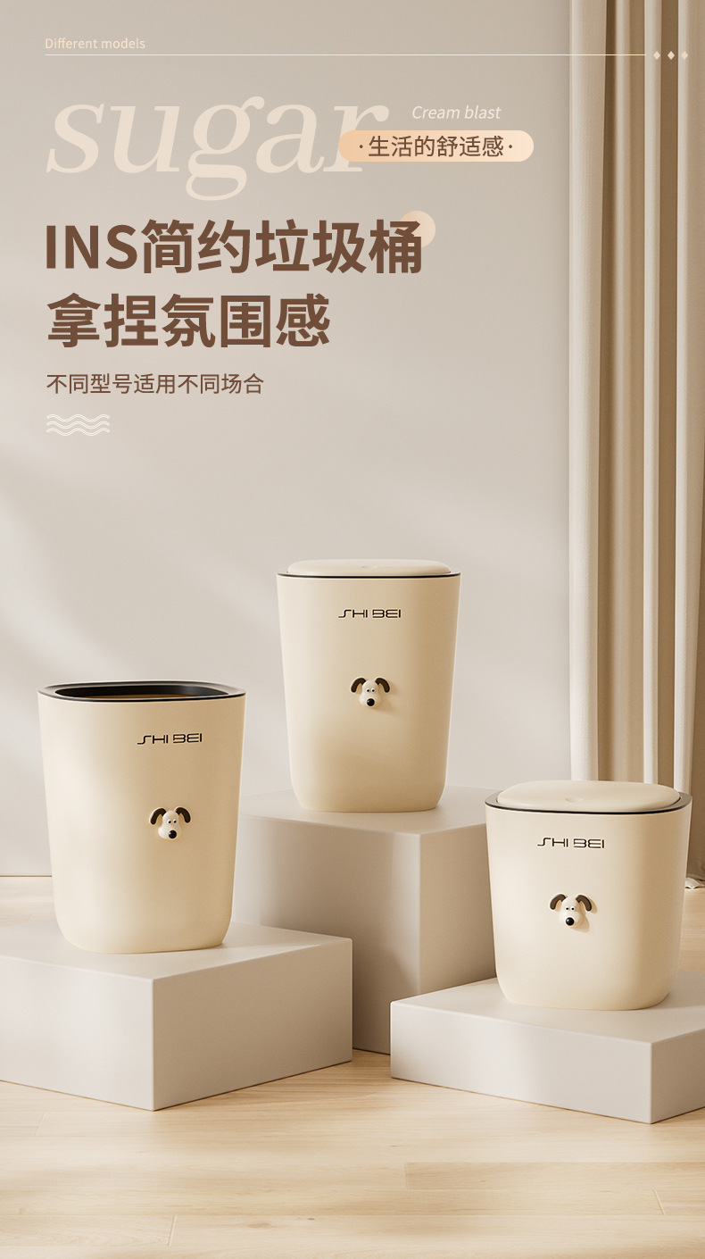 휴지통 뚜껑 가정용 주방 화장실 거실 야외 높은 모양의 창조적 인 바람 압력 반지 개 머리 종이 바구니 통