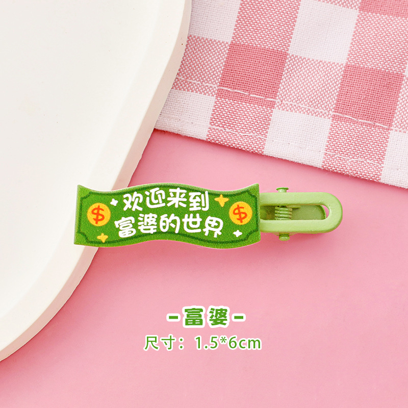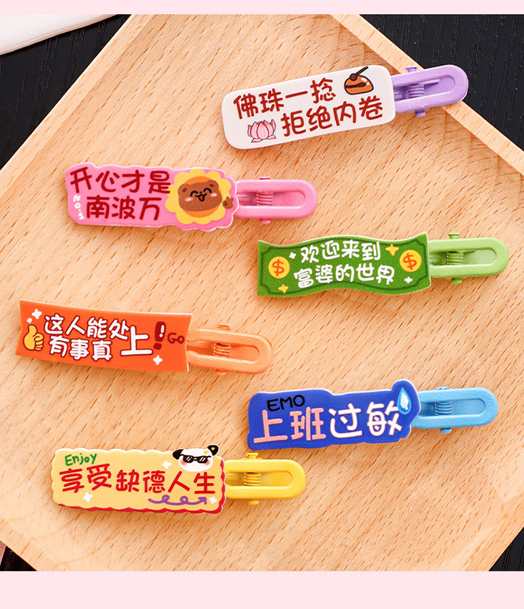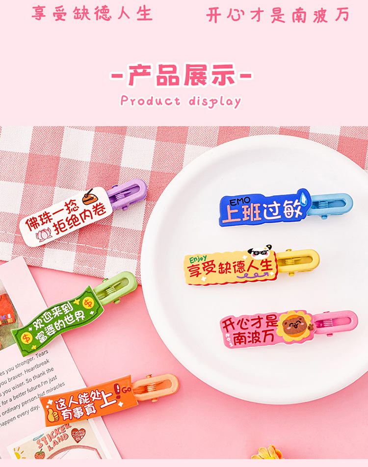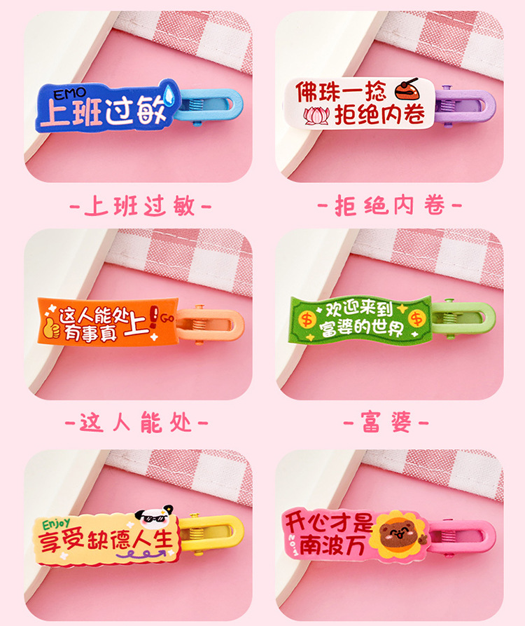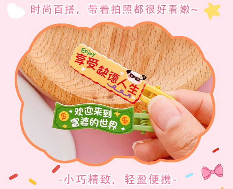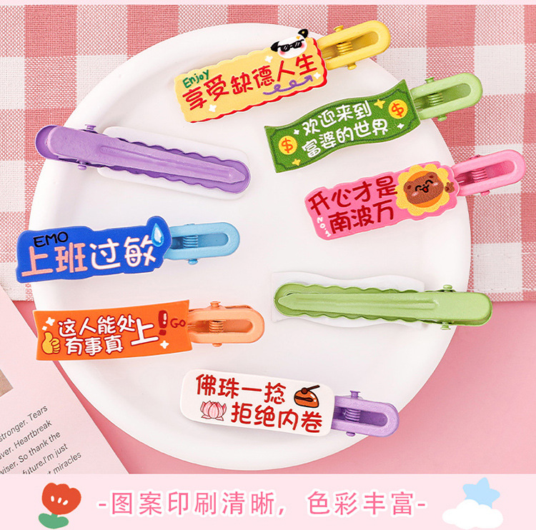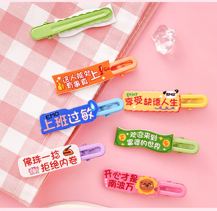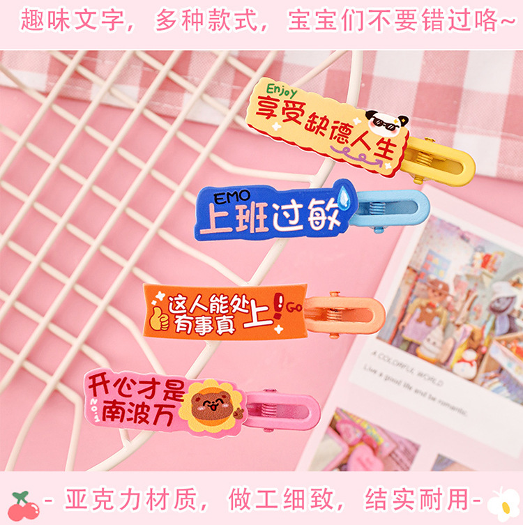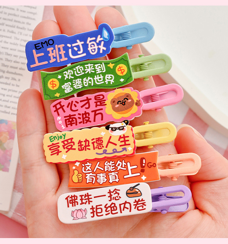 귀여운 재미있는 텍스트 사이드 클립 어린이 창조적 인 뱅 깨진 머리 클립 높은 색상 값 머리핀 머리 머리 액세서리
