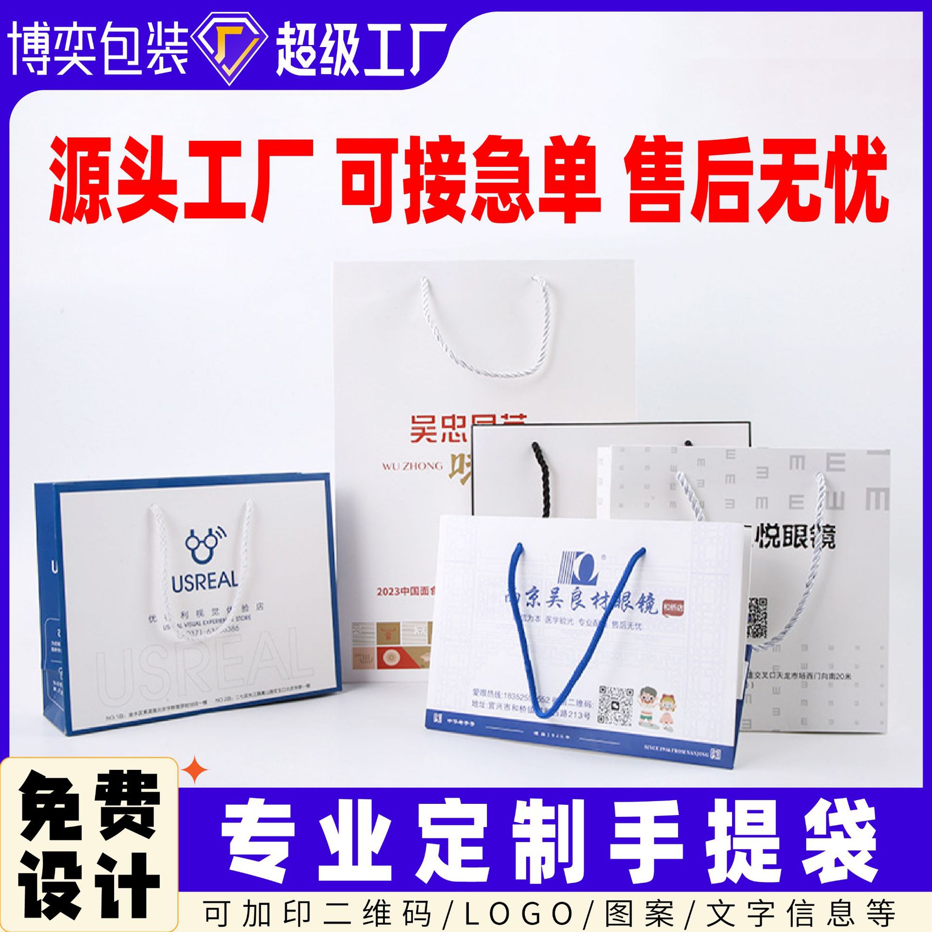 핸드백, 선물 가방, 포장 및 인쇄, 광고 안경, 기업 홍보용 휴대용 종이 가방, 맞춤형 로고, 국경 간 전문 공급