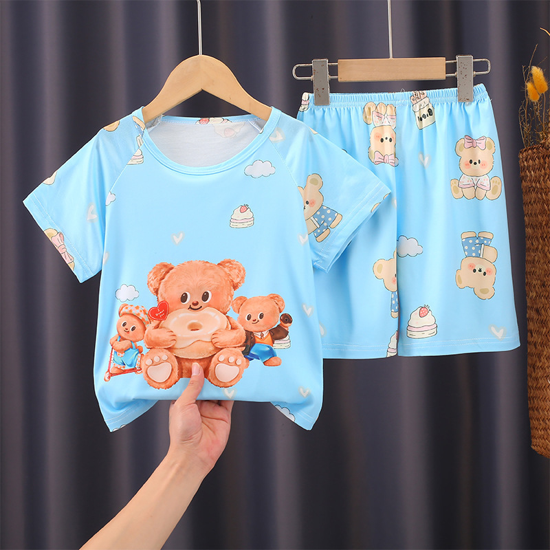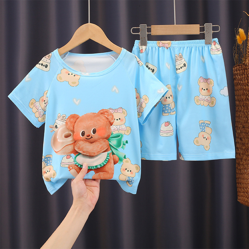 어린이 잠옷 여름 반팔 소녀 세트 여름 귀여운 만화 소년 에어컨 홈웨어스토어 가기