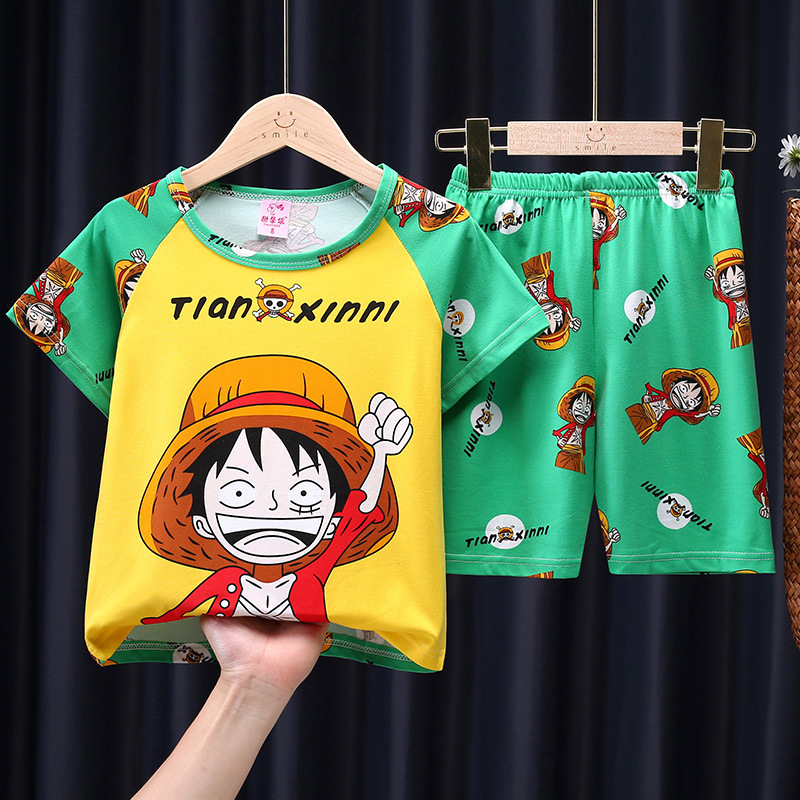 어린이 잠옷 여름 반팔 소녀 세트 여름 귀여운 만화 소년 에어컨 홈웨어