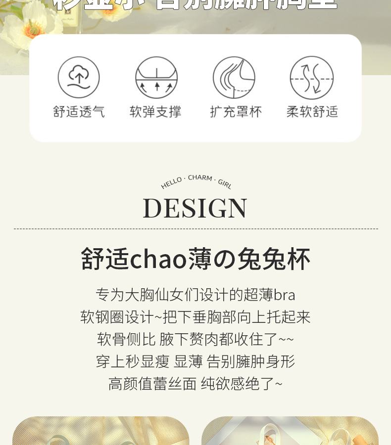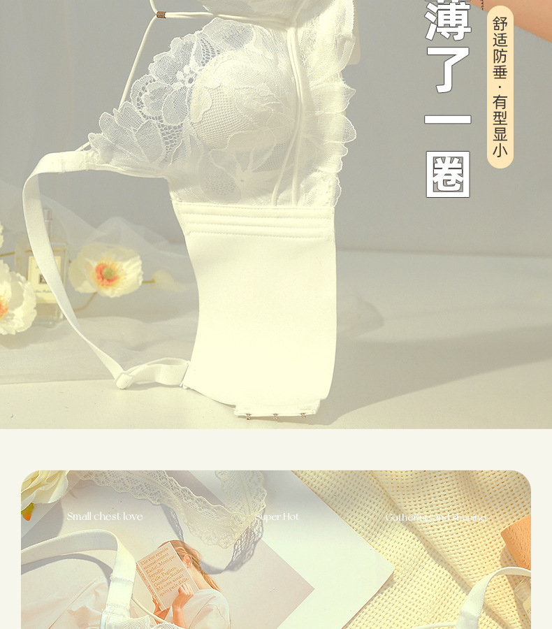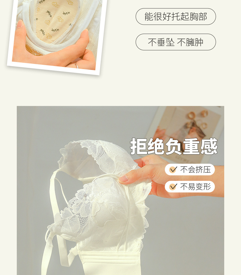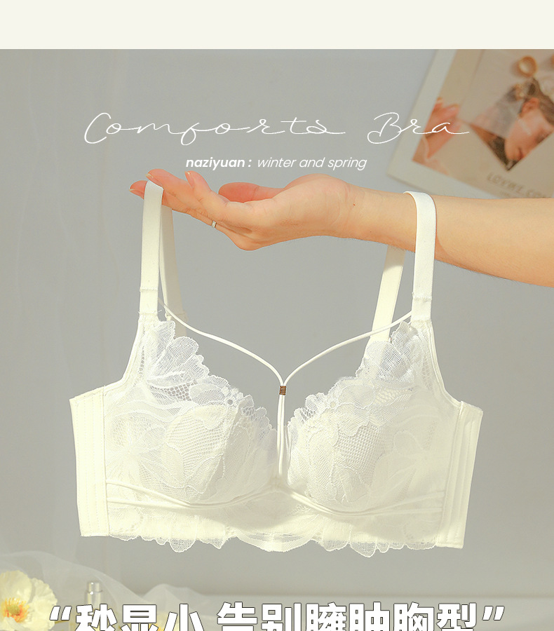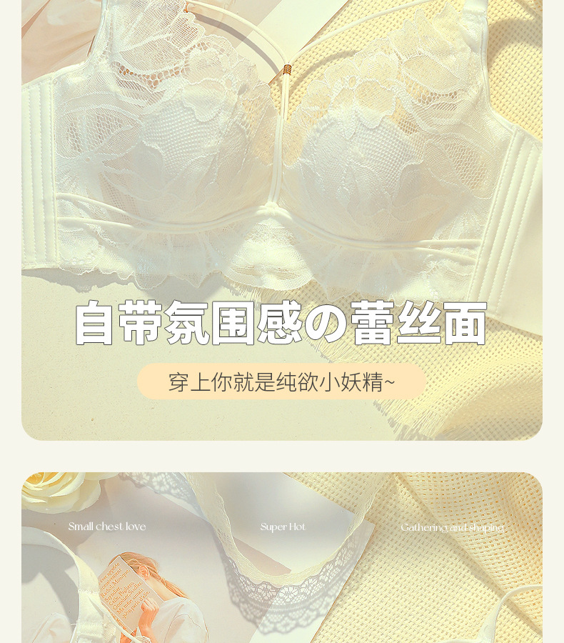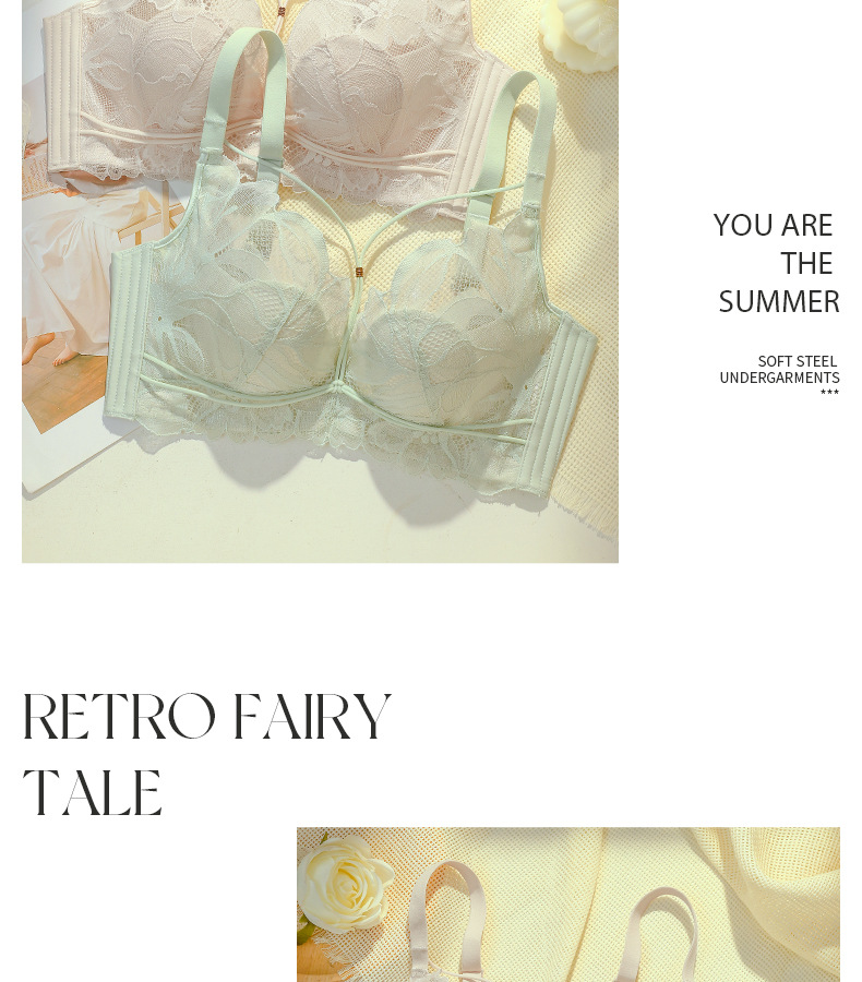 프랑스 스타일 레이스 딥 V 크리스탈 컵 속옷 여성용 메모리 푸시 업 티타늄 링 대형 가슴 소형 편안한 초박형 브래지어
