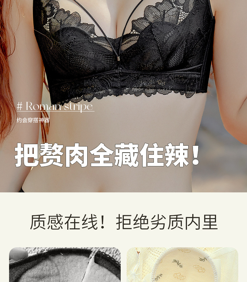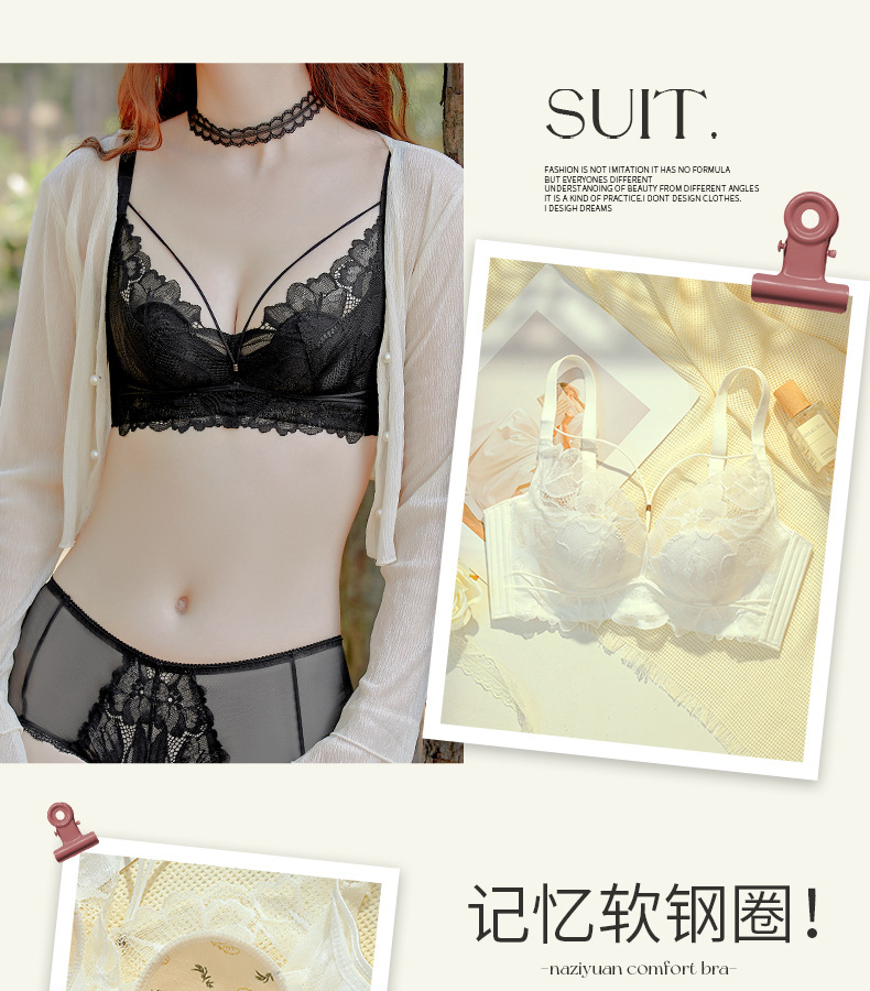 프랑스 스타일 레이스 딥 V 크리스탈 컵 속옷 여성용 메모리 푸시 업 티타늄 링 대형 가슴 소형 편안한 초박형 브래지어스토어 가기