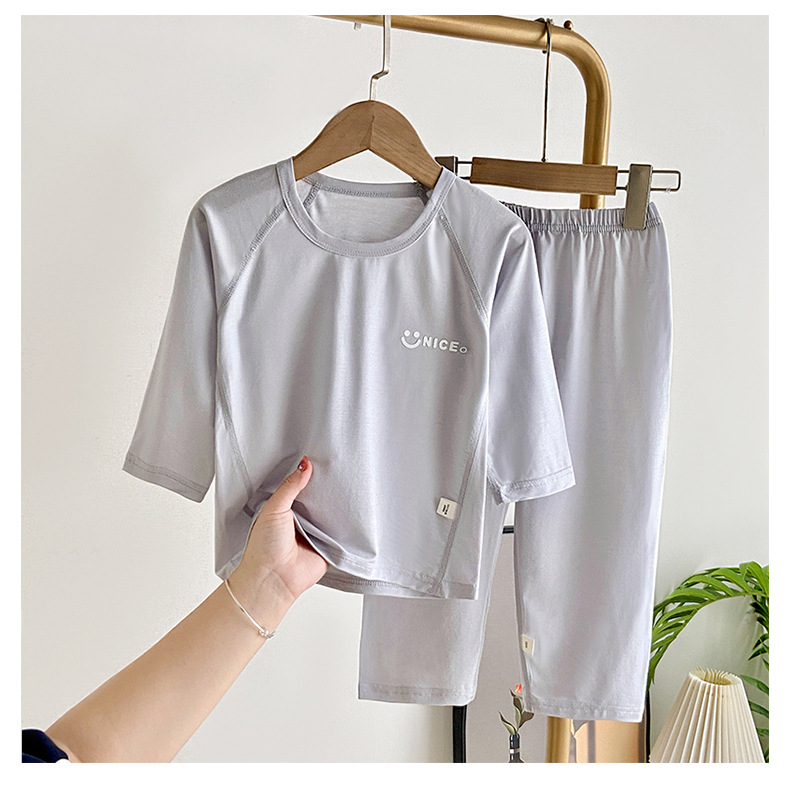 어린이 여름 얇은 잠옷 남아 여아 긴팔 바지 세트 중대형 어린이 홈웨어 여아 반팔 에어컨 옷