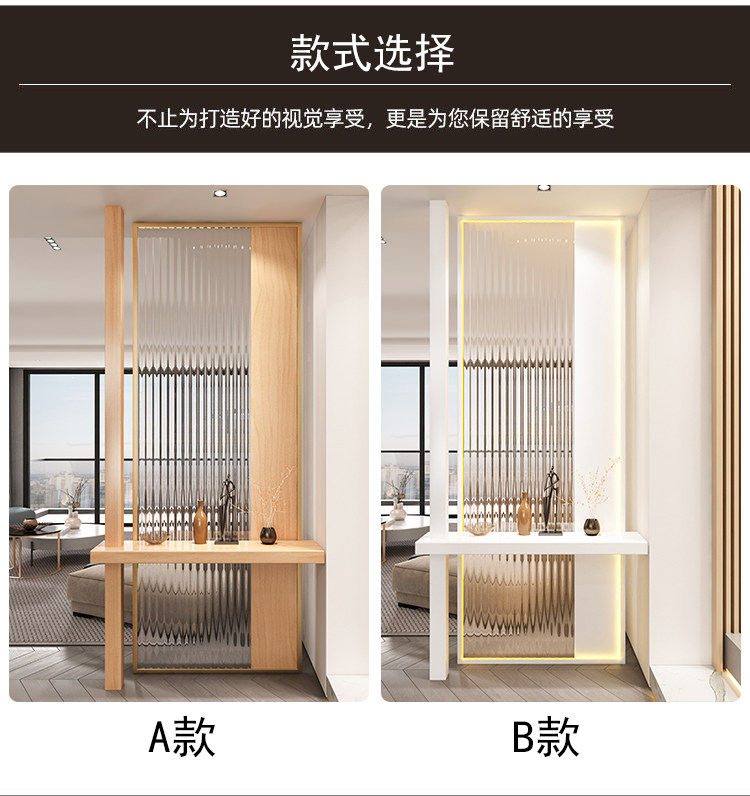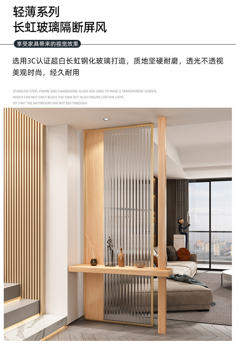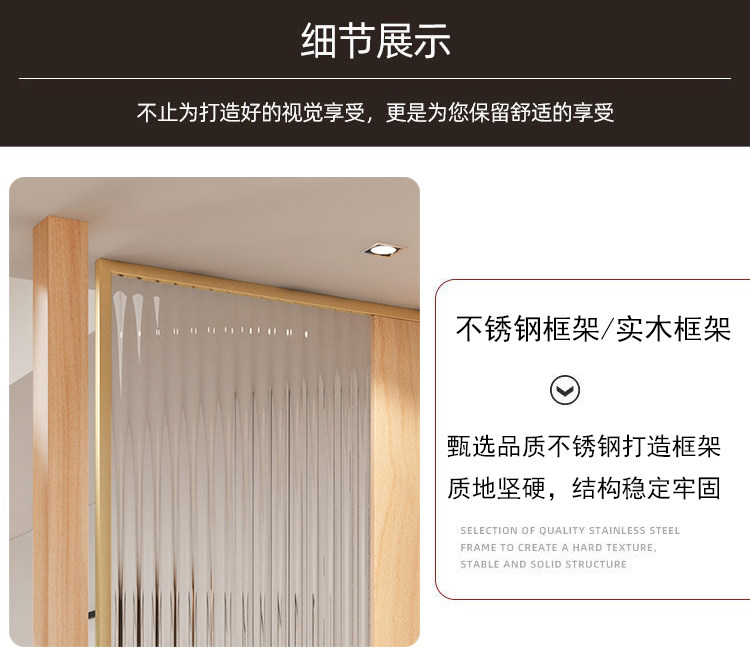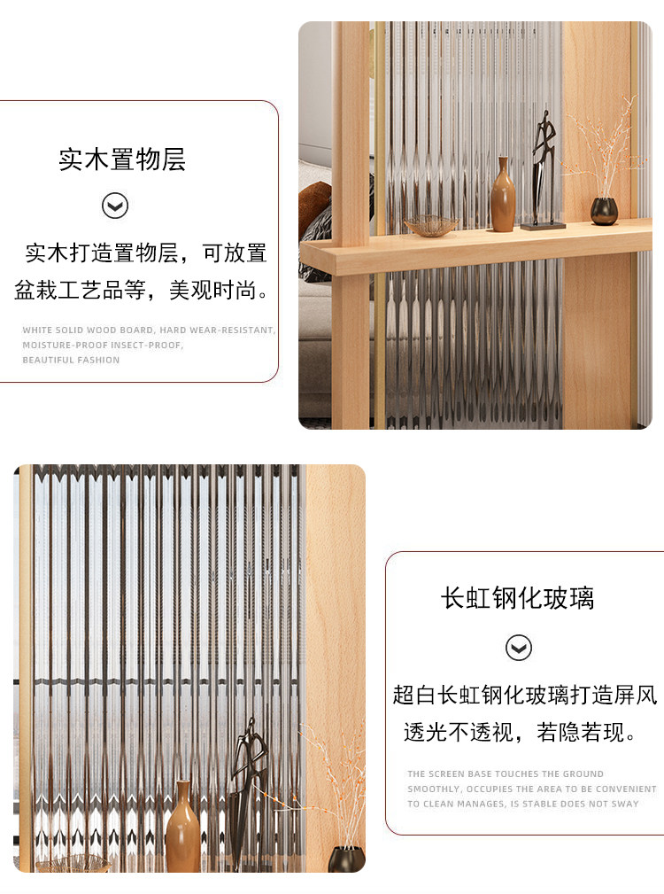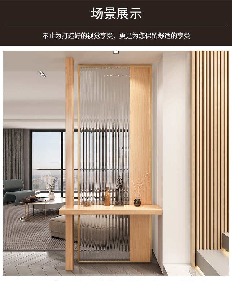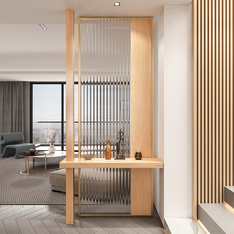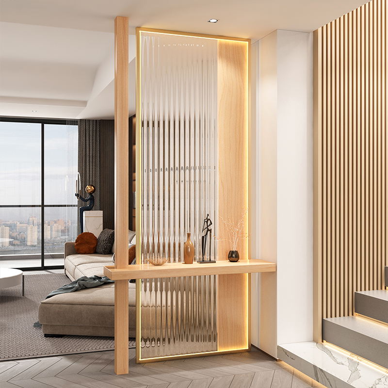 새로운 중국 스타일 솔리드 우드 입구 입구 창홍 유리 파티션 거실 입구 빛 차폐 스테인레스 스틸 빛나는 스크린스토어 가기