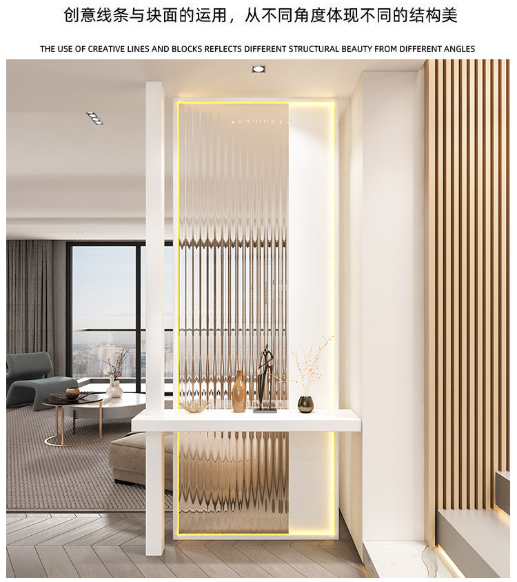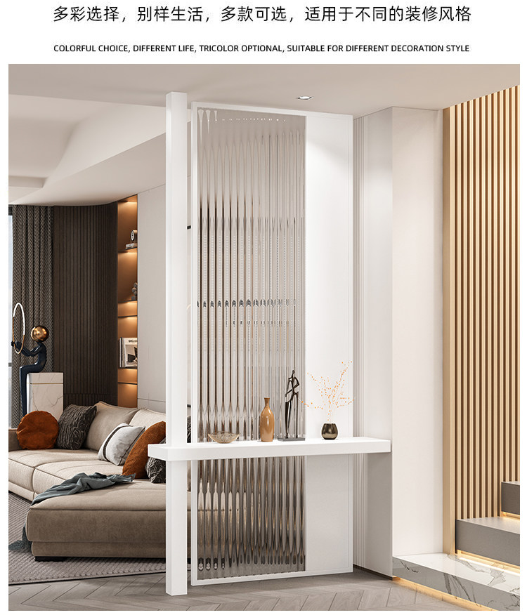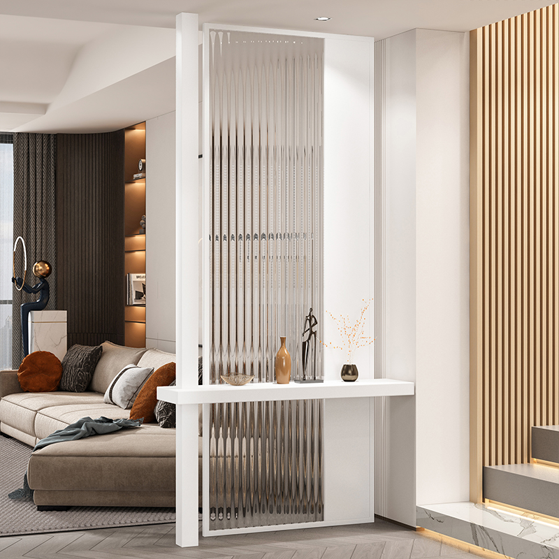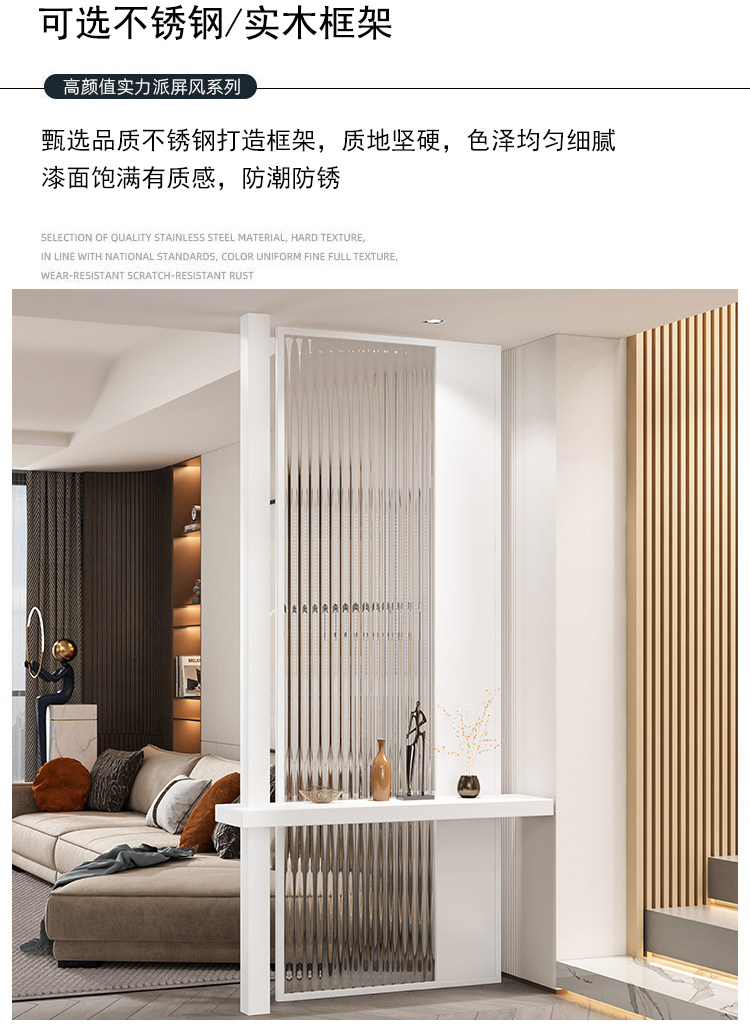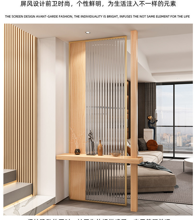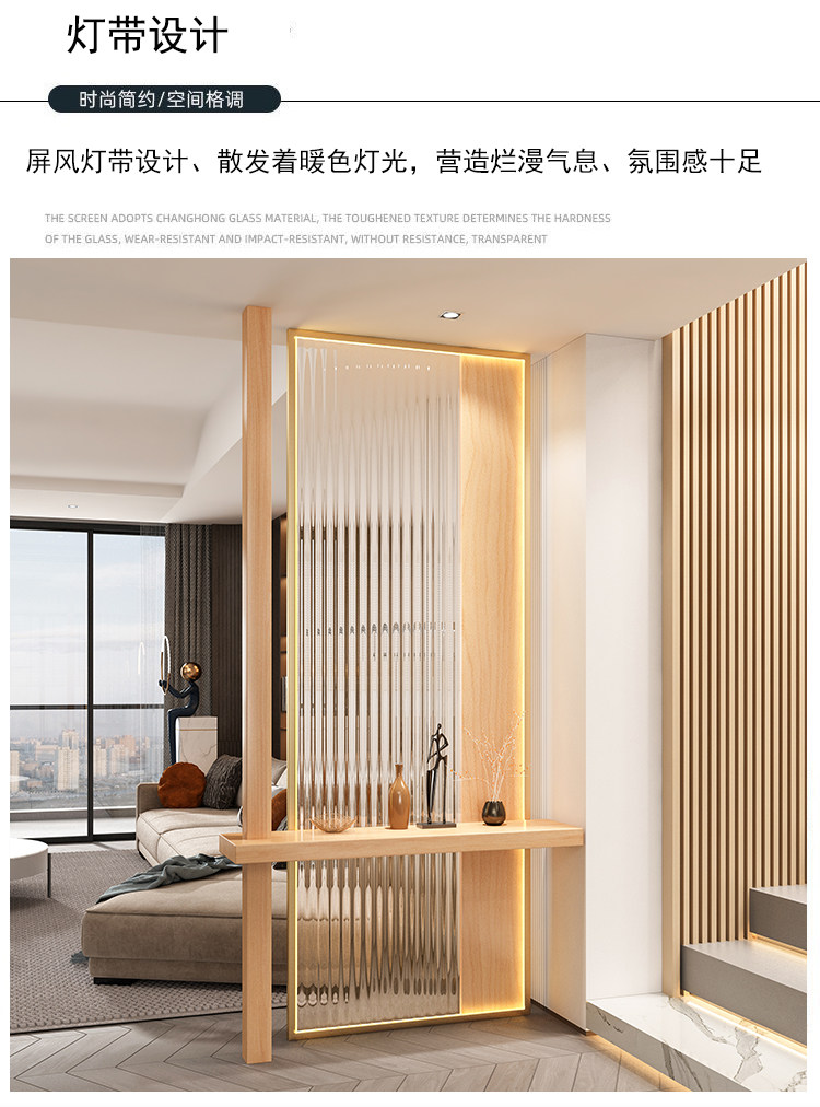새로운 중국 스타일 솔리드 우드 입구 입구 창홍 유리 파티션 거실 입구 빛 차폐 스테인레스 스틸 빛나는 스크린스토어 가기
