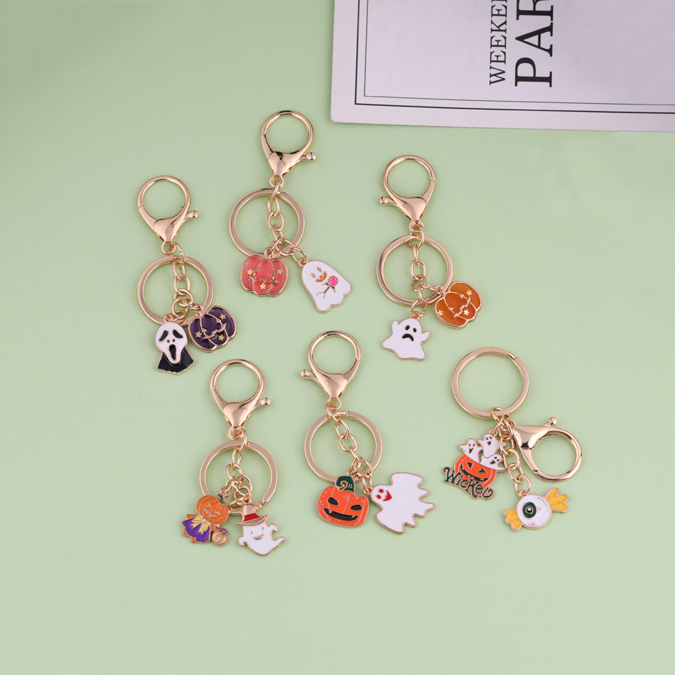 모든 성도 시리즈 만화 재미 호박 유령 인형 키 체인 DIY 자동차 키 체인 체인 체인 체인 체인 펜던트스토어 가기