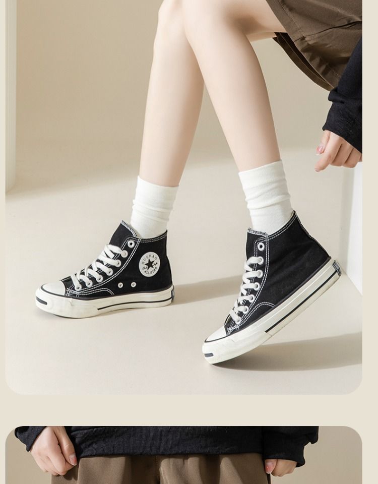 흑백 스타킹 양말 여성용 jk 양말 면화, 트렌디 한 뼈없는 양말 봄과 가을 긴 튜브 가을과 겨울 달 양말스토어 가기