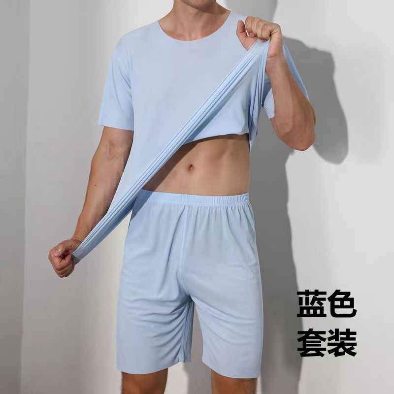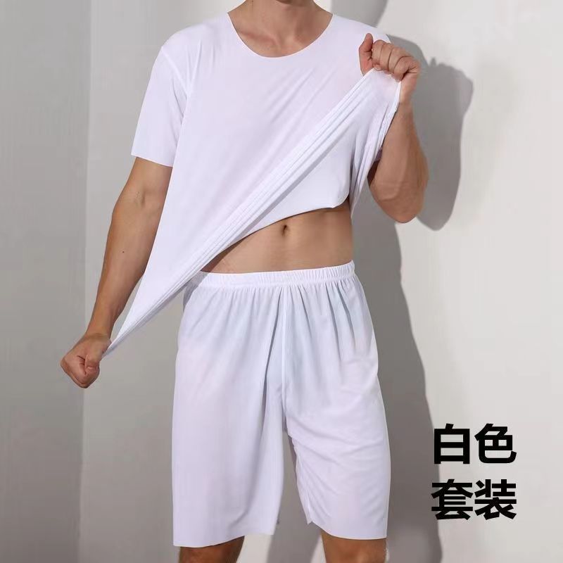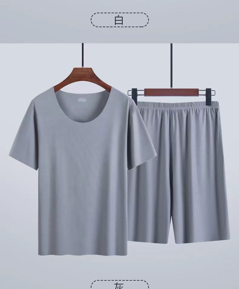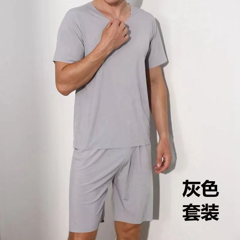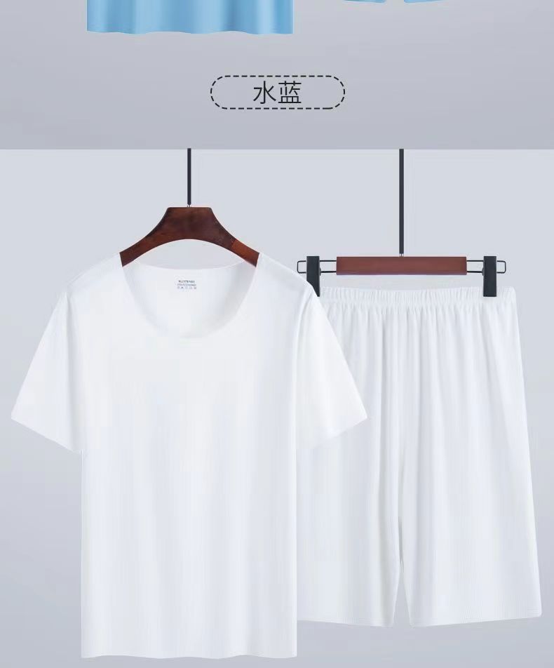 라운드넥 솔리드 컬러 반팔 티셔츠 남성 여름 얇은 스타일 ins 트렌드 스포츠 캐주얼 루즈핏 반바지 세트 트렌디한 스타일