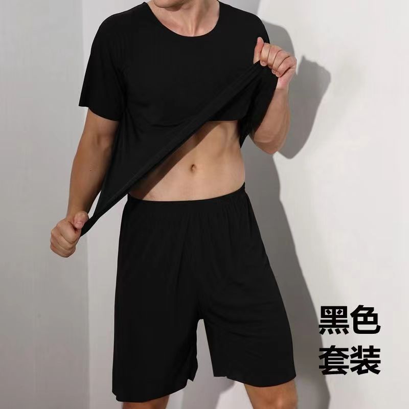 라운드넥 솔리드 컬러 반팔 티셔츠 남성 여름 얇은 스타일 ins 트렌드 스포츠 캐주얼 루즈핏 반바지 세트 트렌디한 스타일스토어 가기