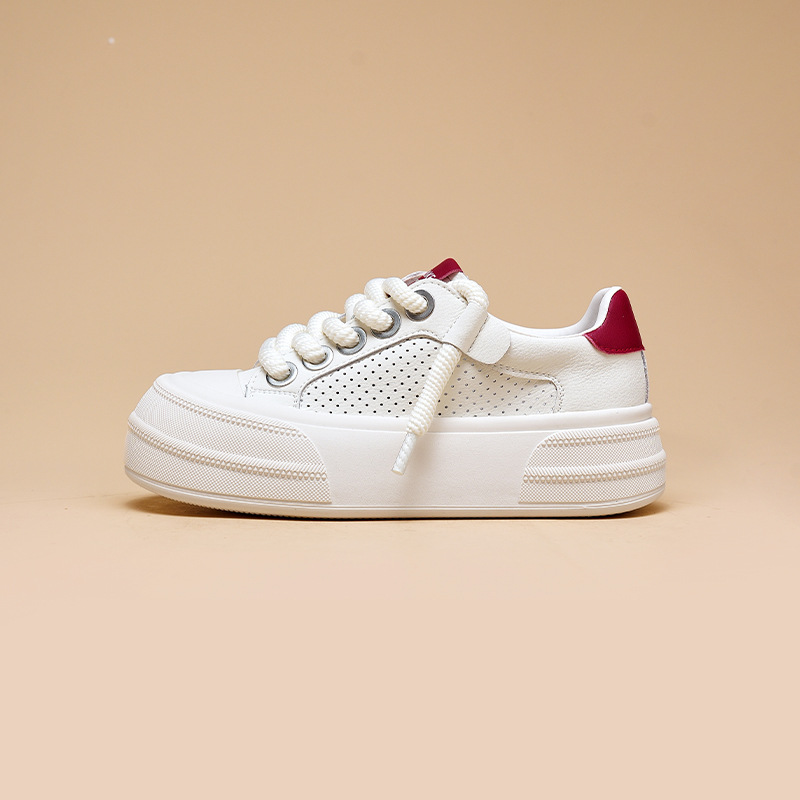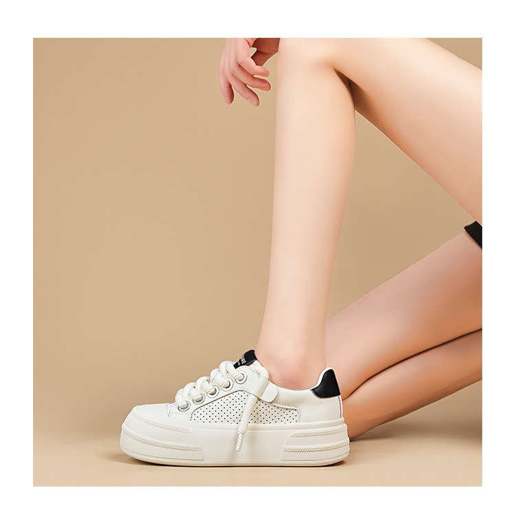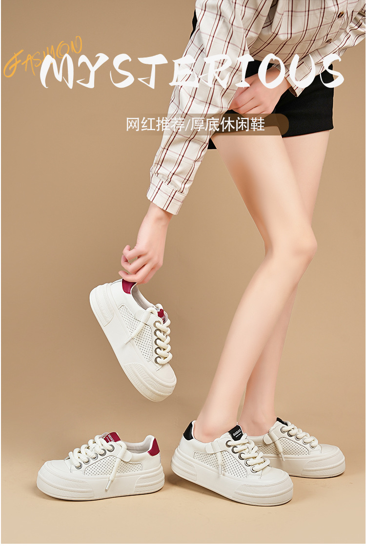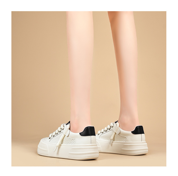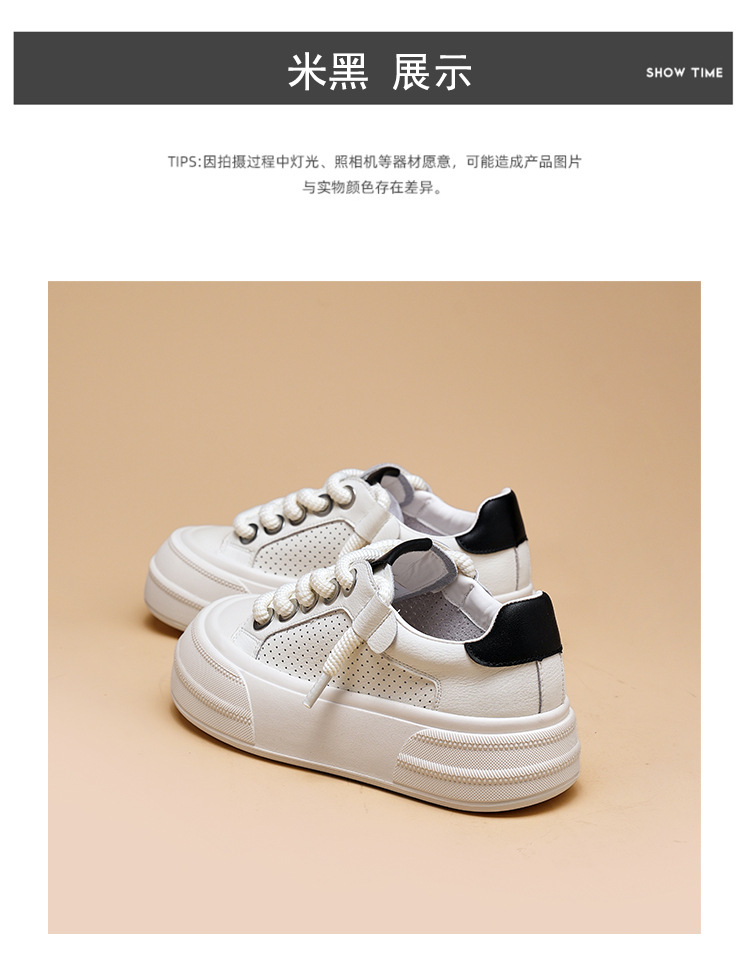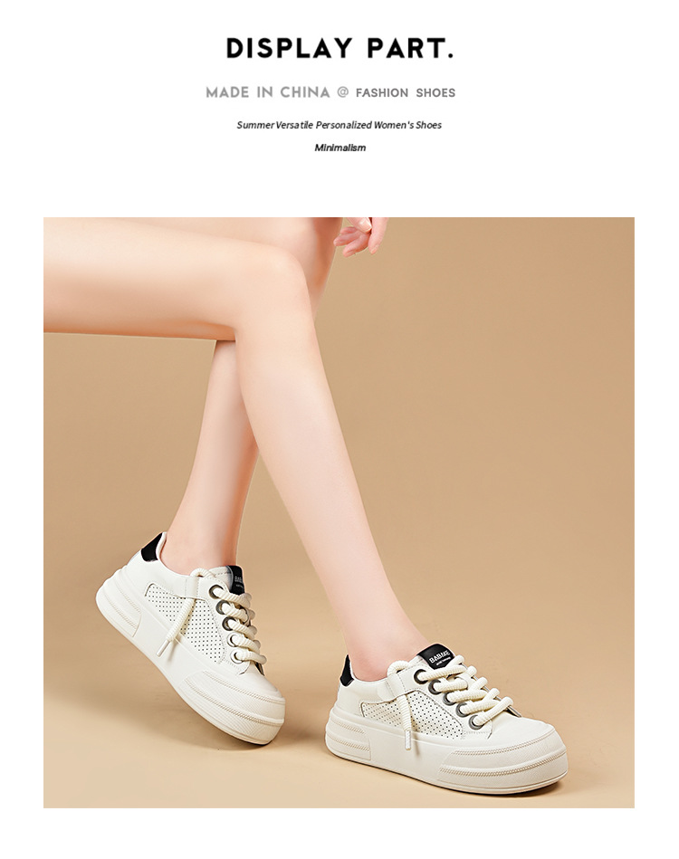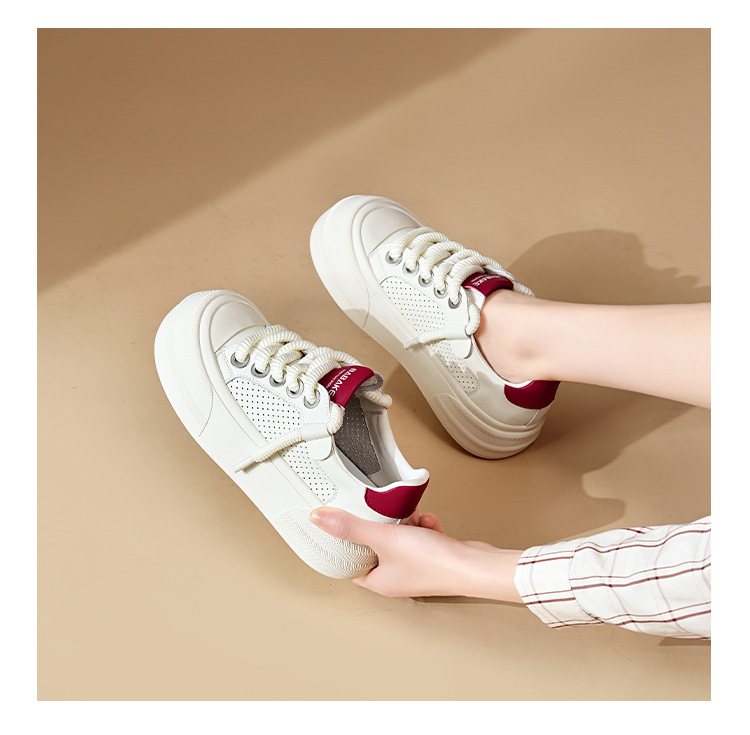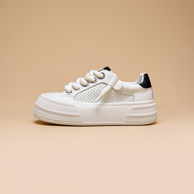 추악한 귀여운 큰 머리 빵 신발 여성의 2024 봄과 여름 새로운 정품 가죽 다용도 흰색 신발 인기 캐주얼 통기성 스케이트 신발