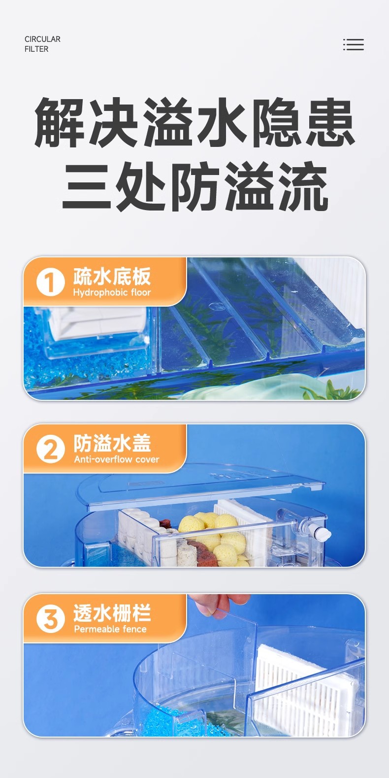 Yee 둥근 물고기 탱크 필터 산소 생성 통합 기계 필터 정수 순환 3 대 1 필터 상자 벽 교수형 폭포