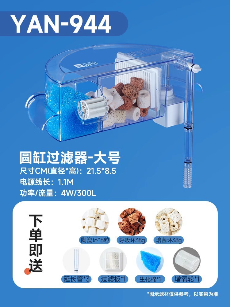Yee 둥근 물고기 탱크 필터 산소 생성 통합 기계 필터 정수 순환 3 대 1 필터 상자 벽 교수형 폭포스토어 가기