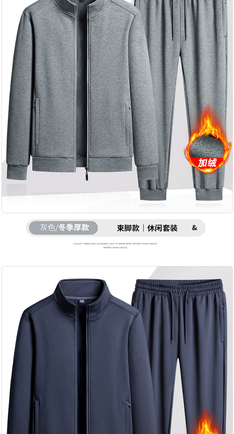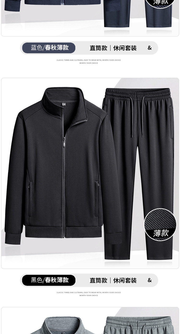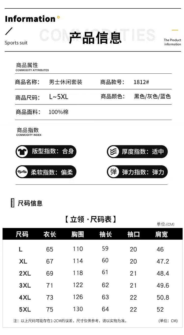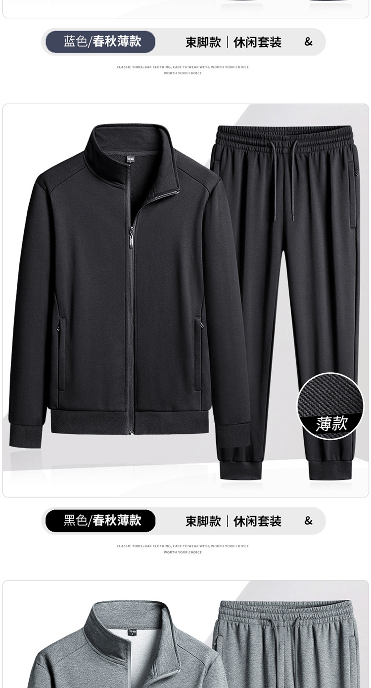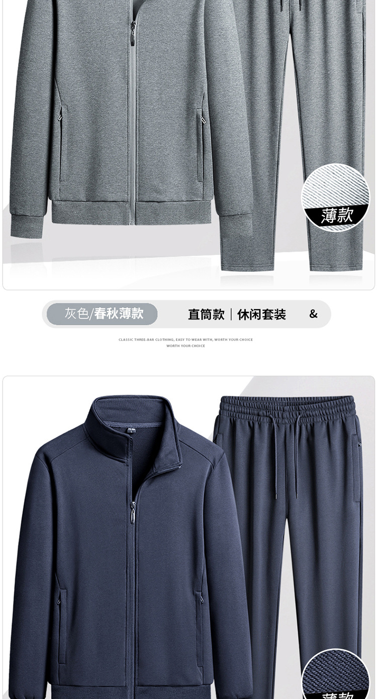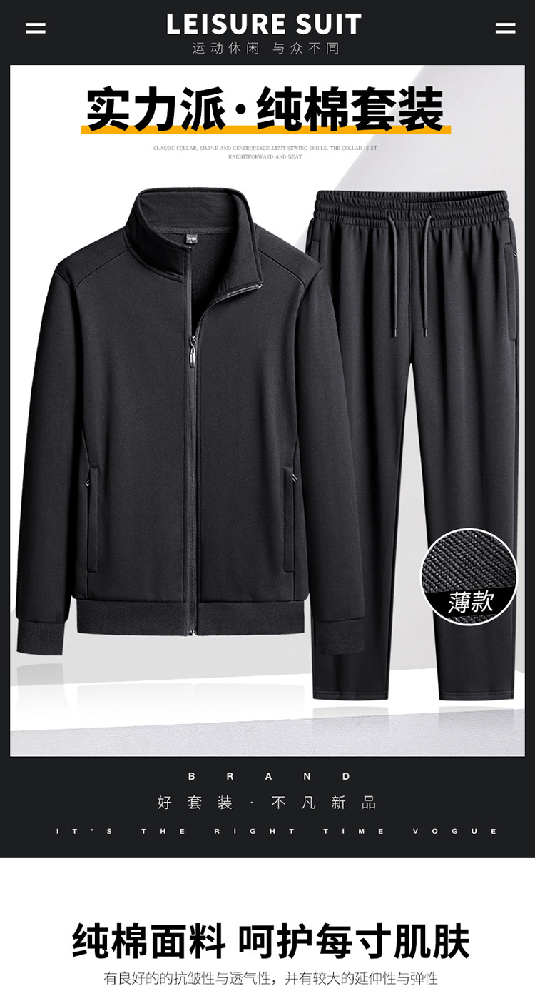 봄과 가을 순면 칼라 세트 남성 스포츠 얇은 레저 운동 순면 봄과 가을 남성 스웨터 세트스토어 가기