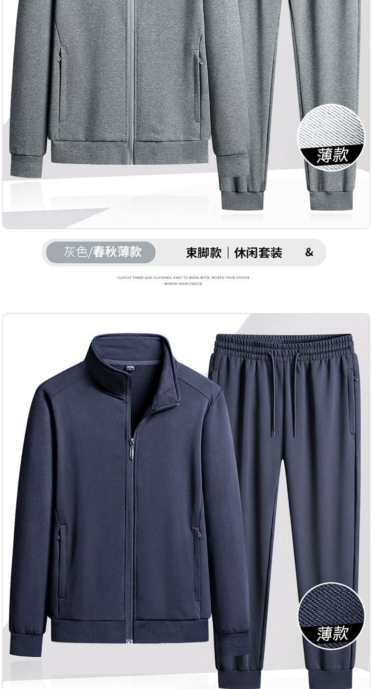 봄과 가을 순면 칼라 세트 남성 스포츠 얇은 레저 운동 순면 봄과 가을 남성 스웨터 세트