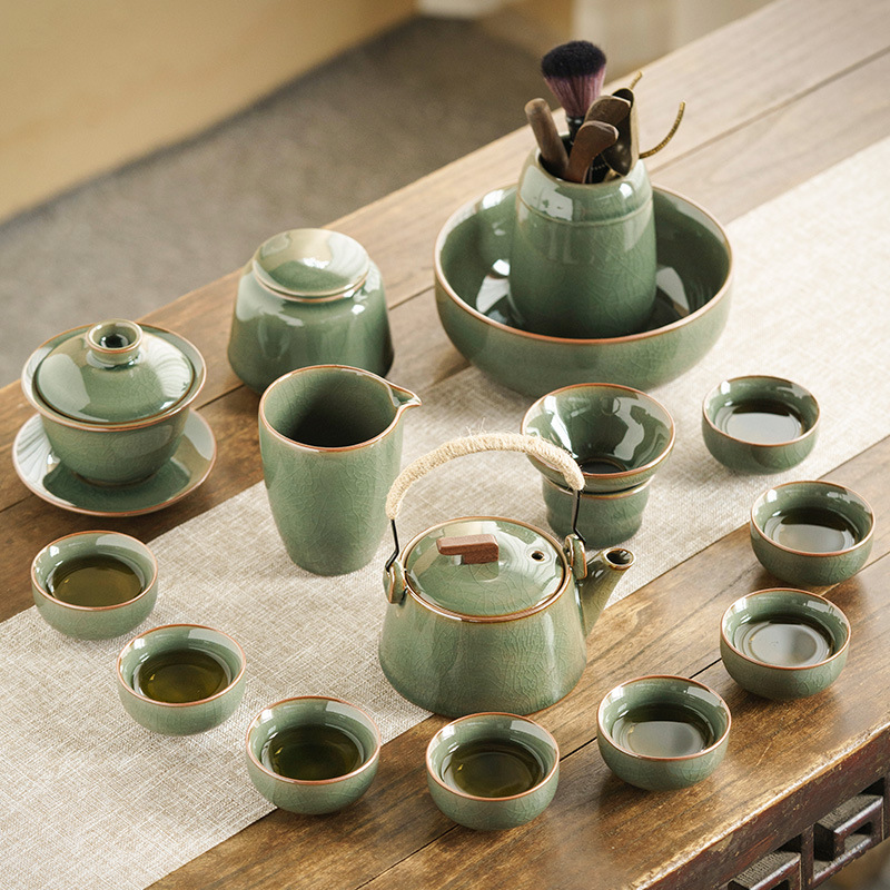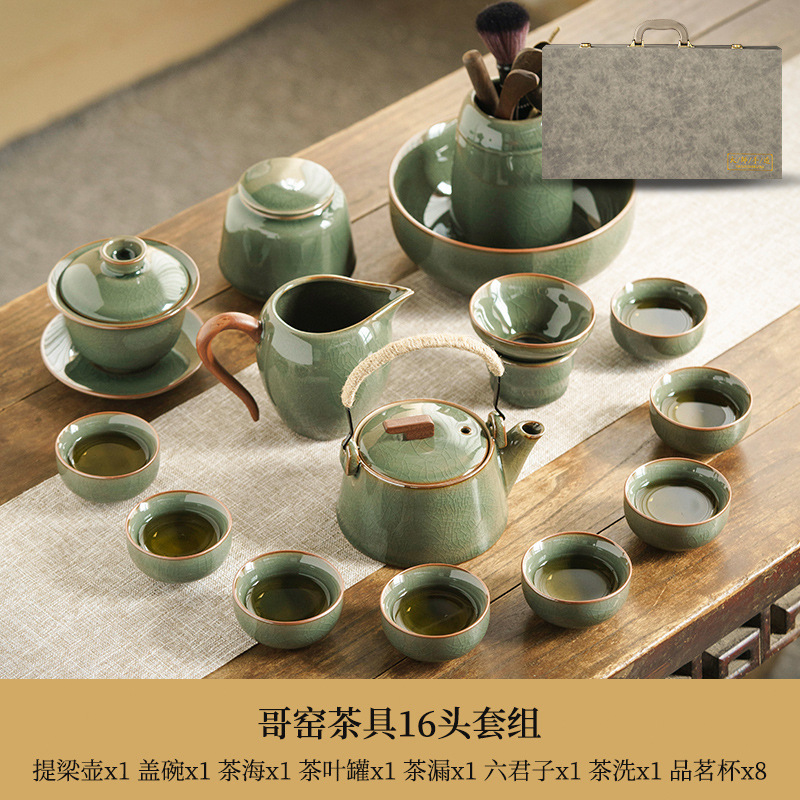 • 15 헤드 빔 포트 Ge 가마 꿀 유약 차 세트 (곡선 핸들 남성 컵)